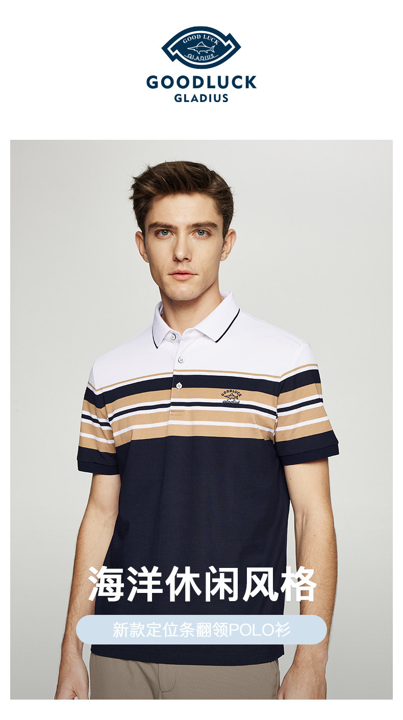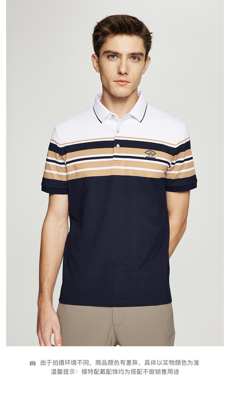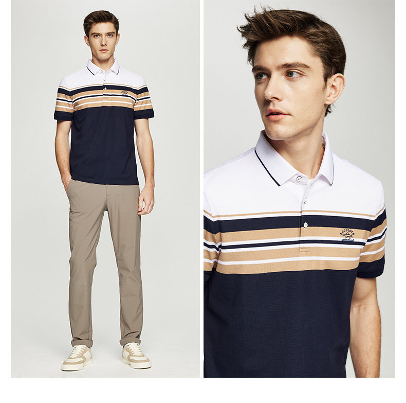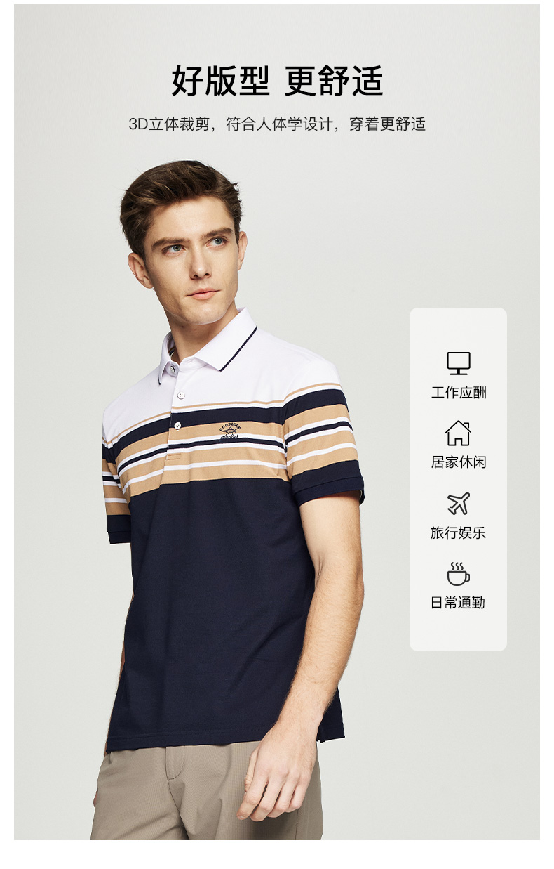 【桑蚕丝】德鲨短袖条纹POLO衫男2026夏季新款休闲翻领T恤