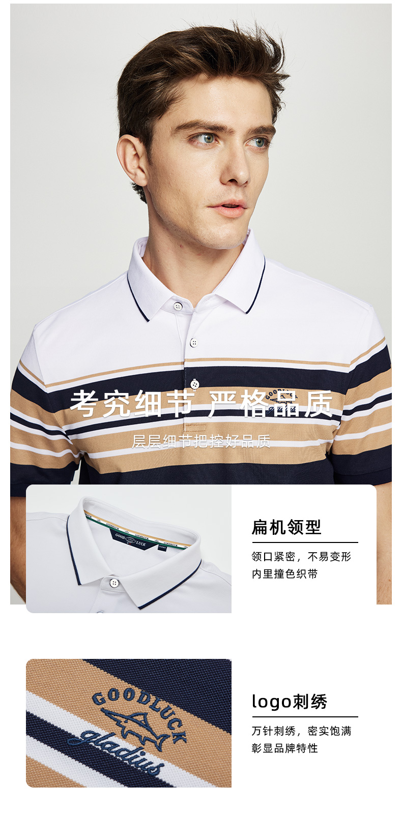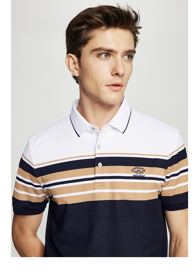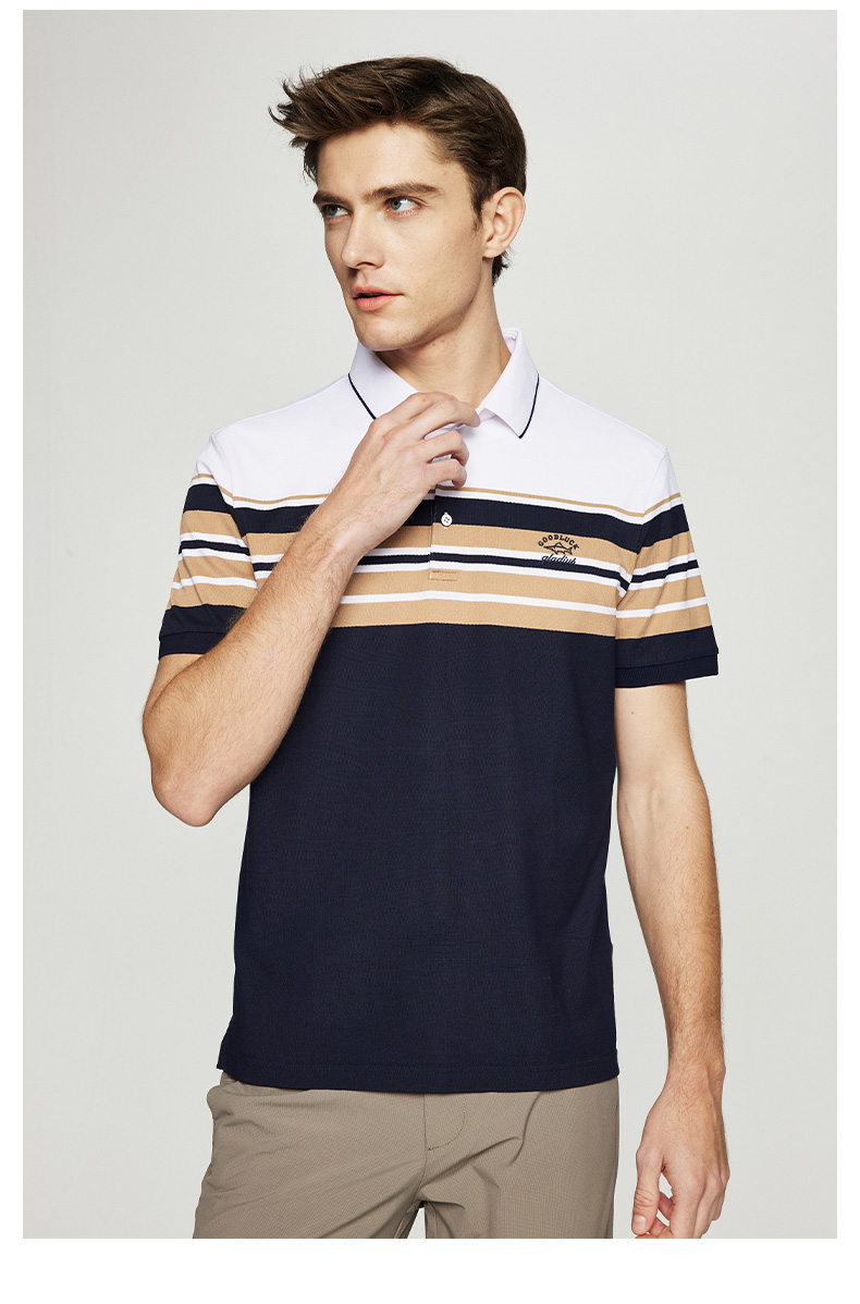 【桑蚕丝】德鲨短袖条纹POLO衫男2026夏季新款休闲翻领T恤