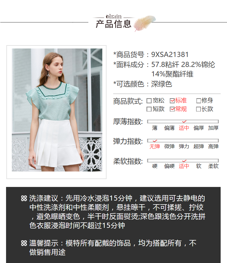 - “精致”是欧芮儿olrain品牌文化的核心,欧芮儿认为,精致的女人,不但要外在动人,更要内在迷人,内外兼修,有魅力、有气质、有内涵,自信而不自傲,优雅而不矫揉,自有万种风情而不轻浮,更不故作矜持。