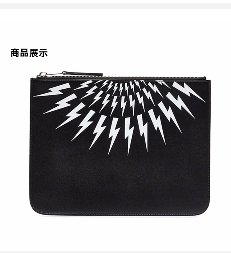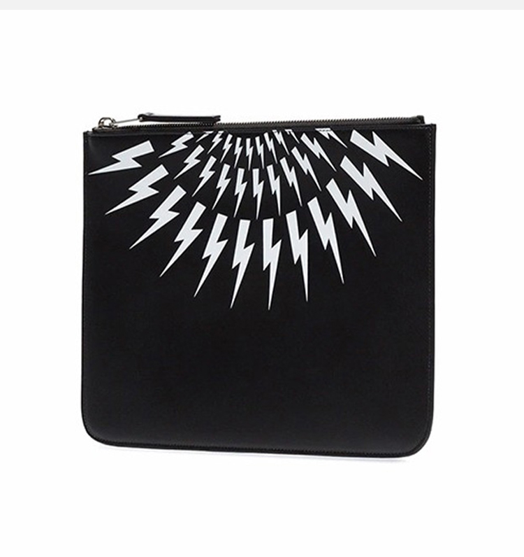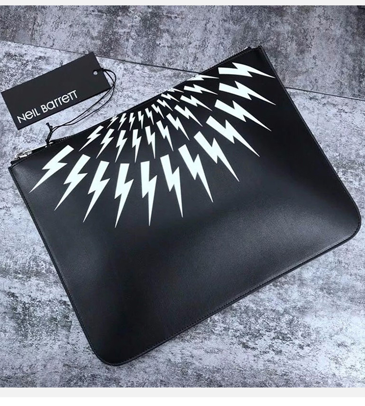 NEIL BARRETT 尼奥·贝奈特 男士牛皮闪电印花商务出差手拿包 黑色 BSG151 H9201 524