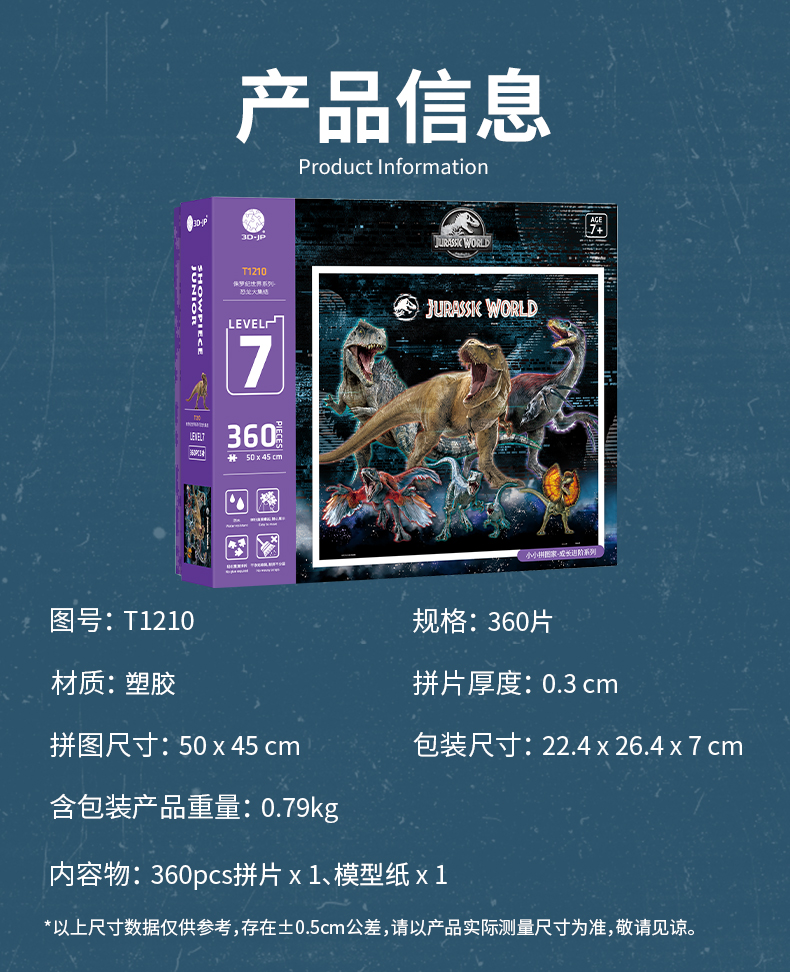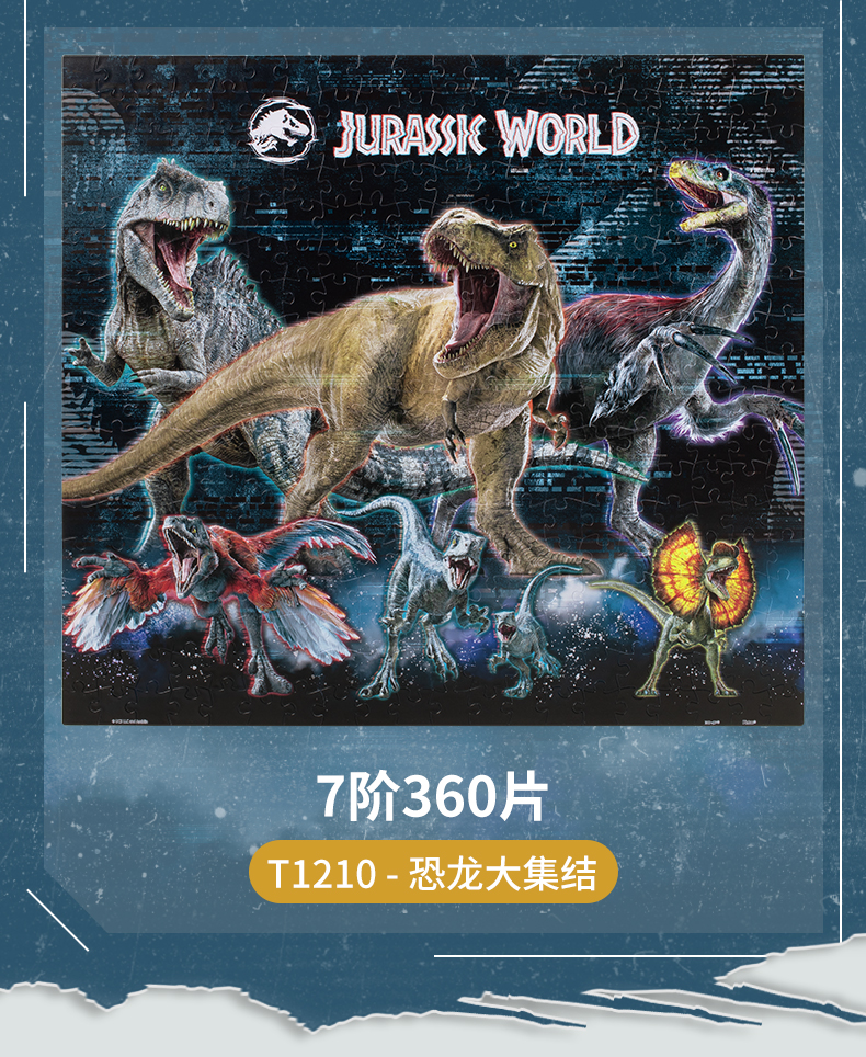 【折扣商品 不退不换】360片7阶 儿童拼图 T1210 侏罗纪世界系列-恐龙大集结 4岁到6岁塑料大块益智玩具