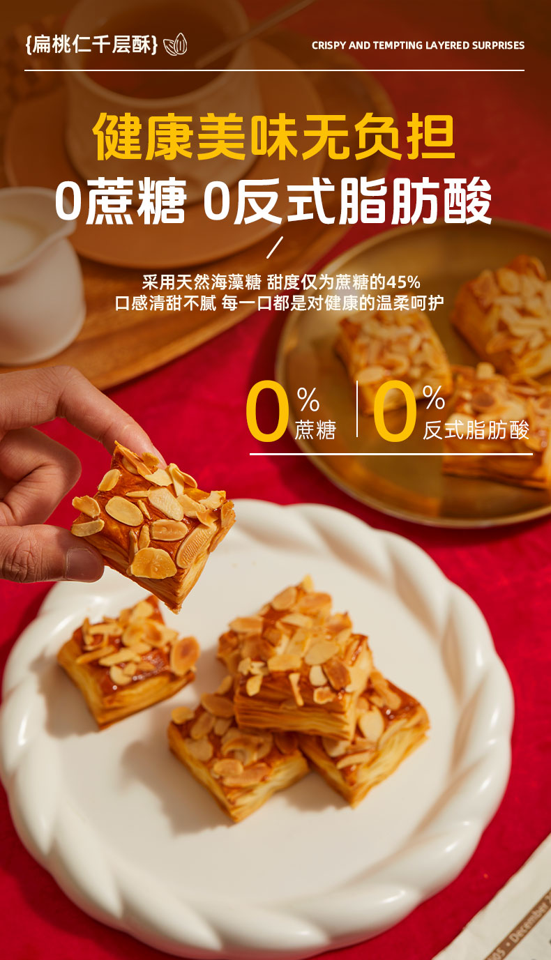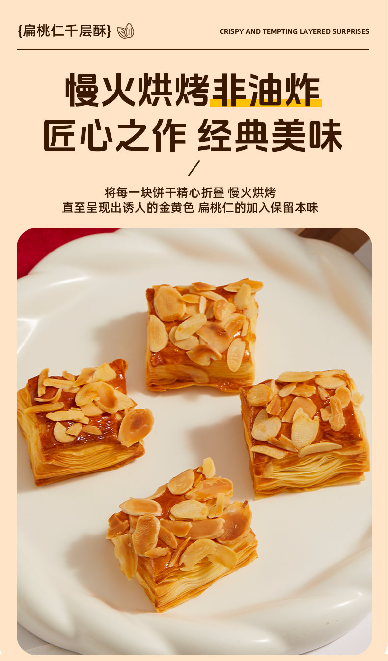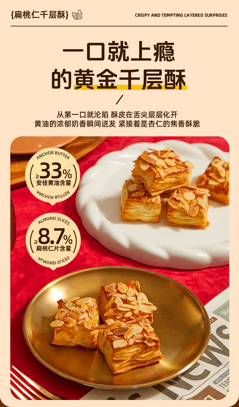 【颜小贝(山姆同款)杏仁千层酥】酥脆香浓,层层美味!现烤非油炸,一口就上瘾,好吃不甜腻!