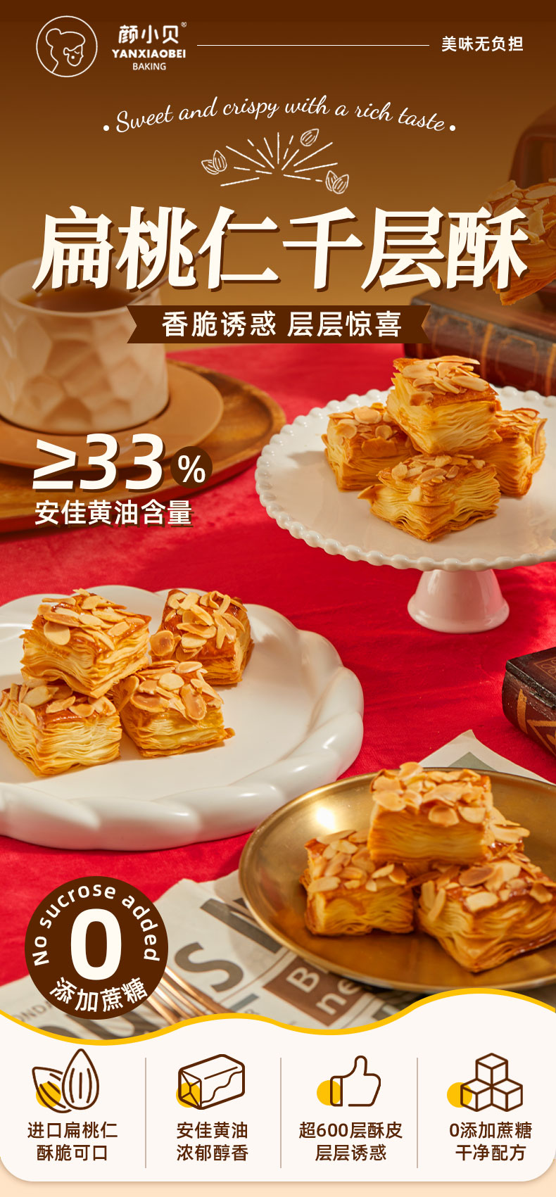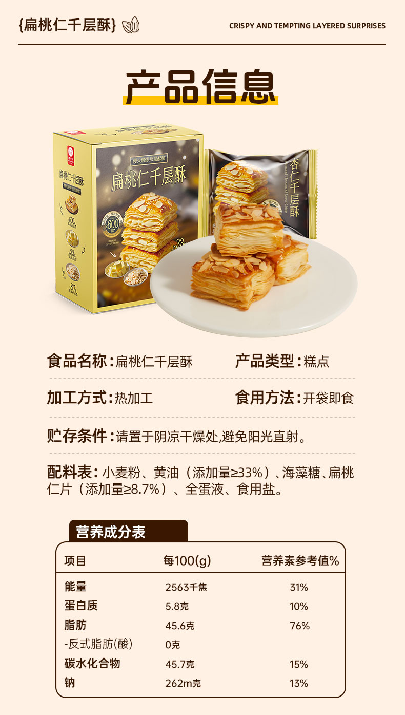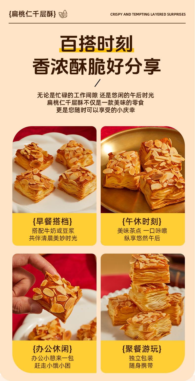 【颜小贝(山姆同款)杏仁千层酥】酥脆香浓,层层美味!现烤非油炸,一口就上瘾,好吃不甜腻!