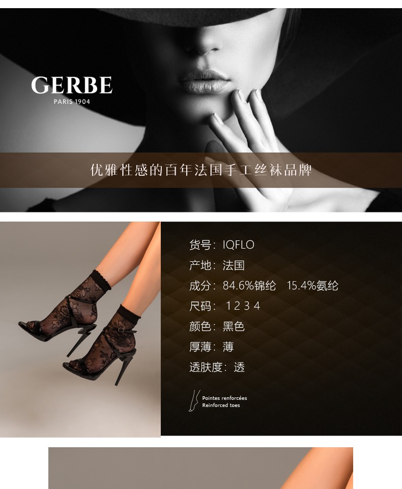 Gerbe格伯 100%法国原装进口女士短袜 女丝袜IQFLO 20d