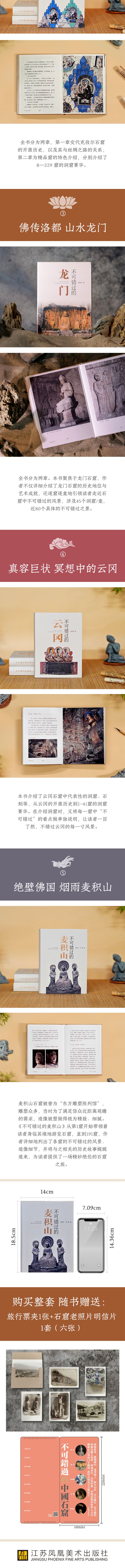 不可错过系列共5册 云冈 龙门 敦煌 克孜尔 麦积山 赠明信片+票夹