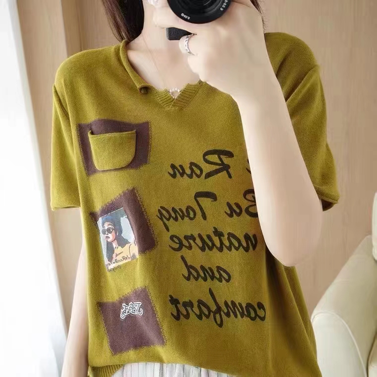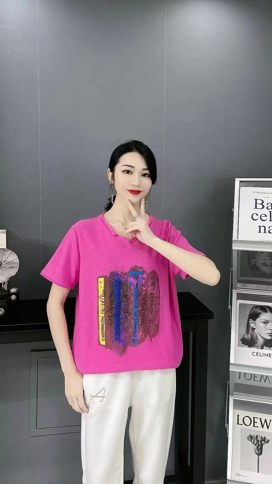 若伊霞针织半袖,休闲百搭,穿着舒适透气,从80-140斤都可以穿着,均码号紫色,红色,蓝色,黑色,咖色,粉色,黄色编码05168903