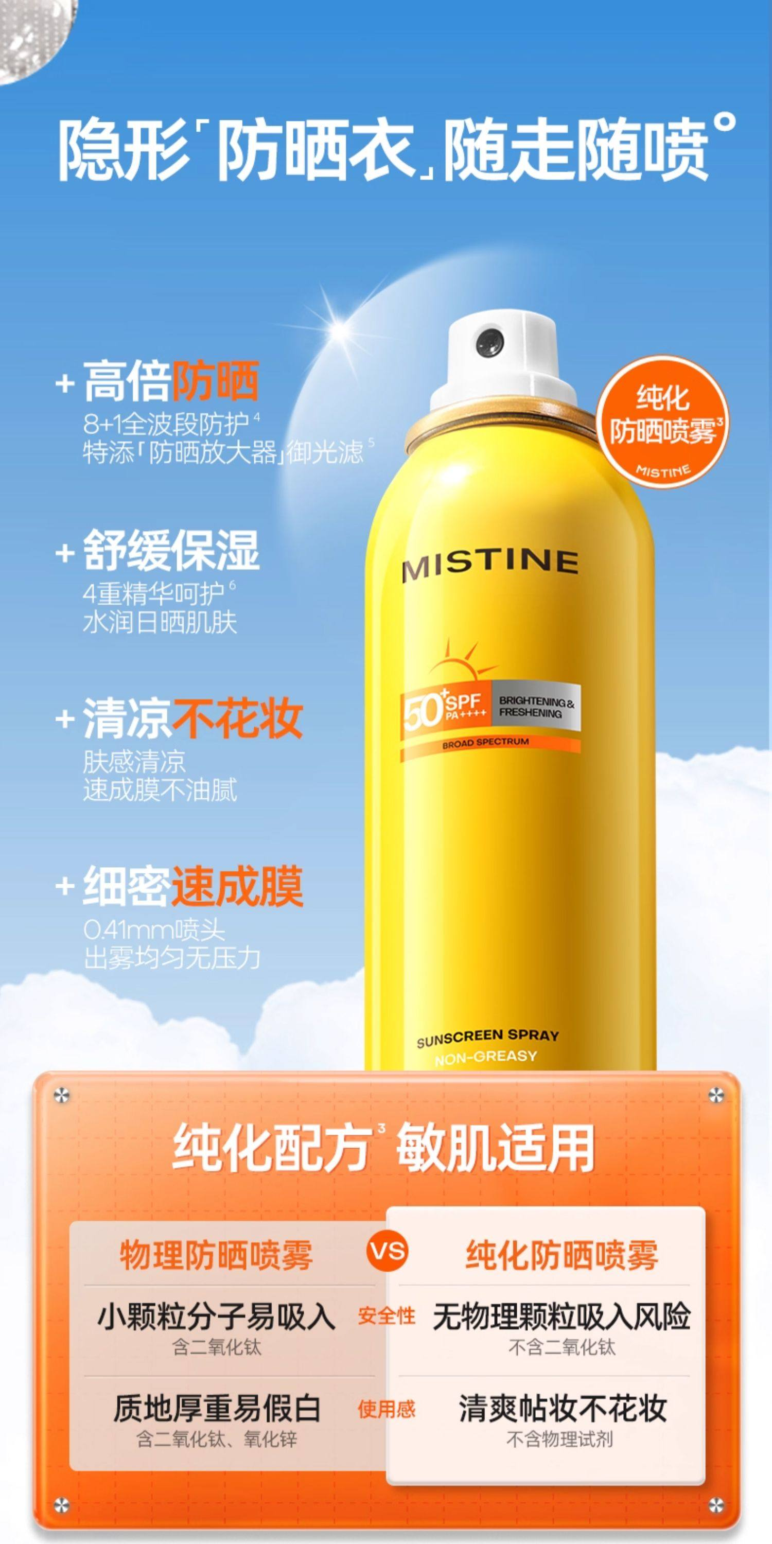 泰国Mistine蜜丝婷小黄喷防晒喷雾(100ml/瓶)生产日期: 2026年3月