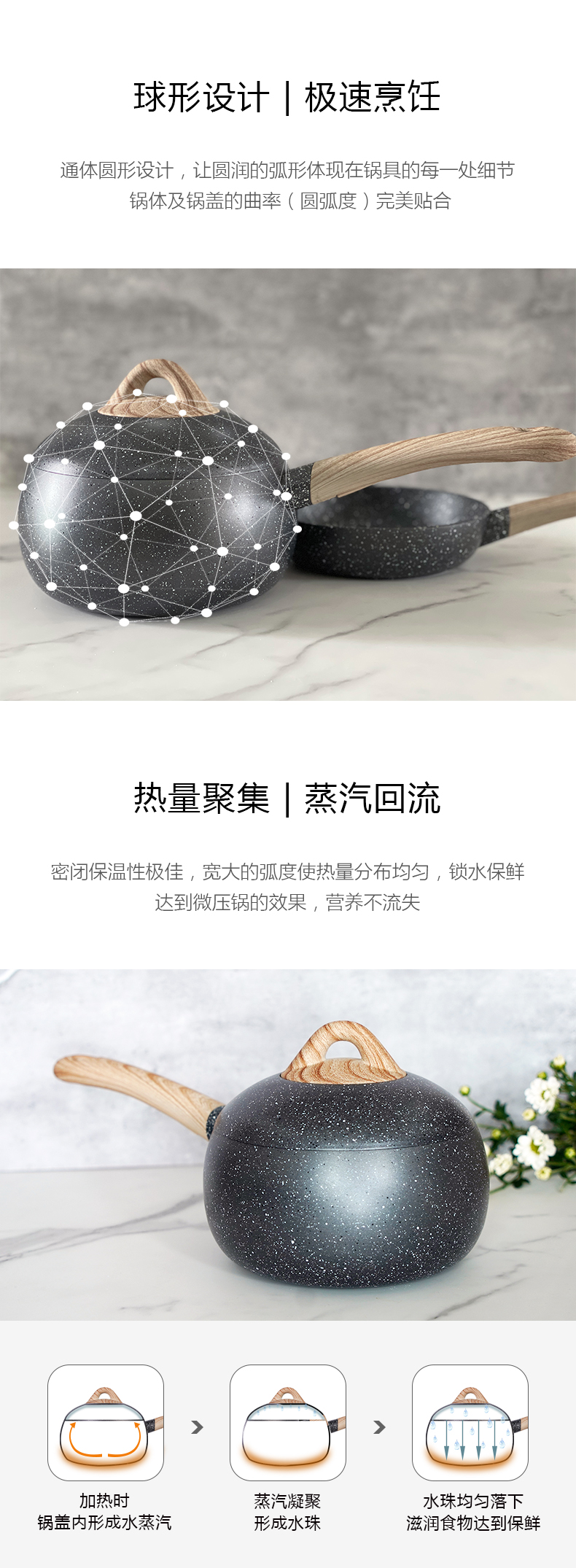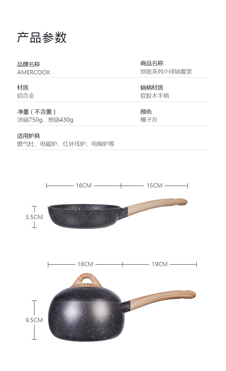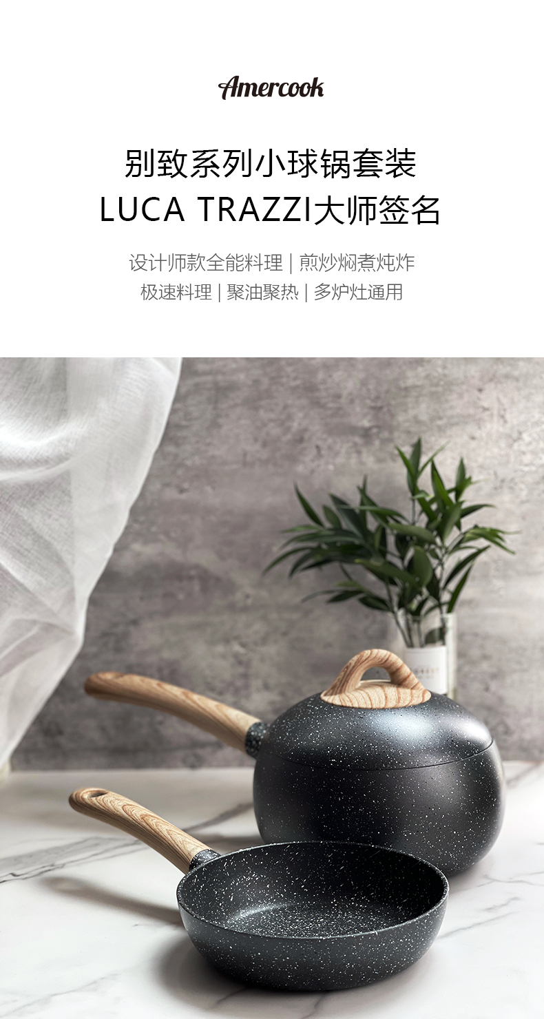 【刘涛推荐 印小天代言】美国AMERCOOK 阿米尔小球锅套装 (多功能汤锅+煎锅)蒸 煮 炒 炖 焖全能