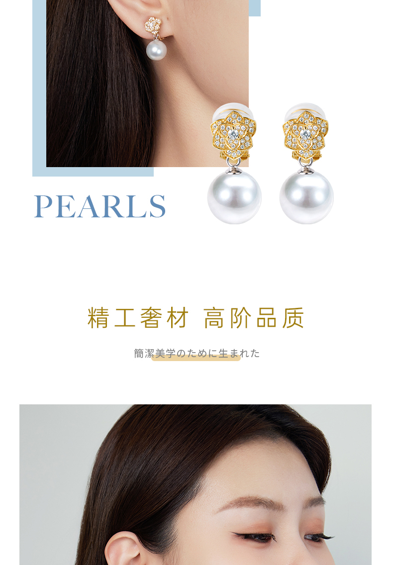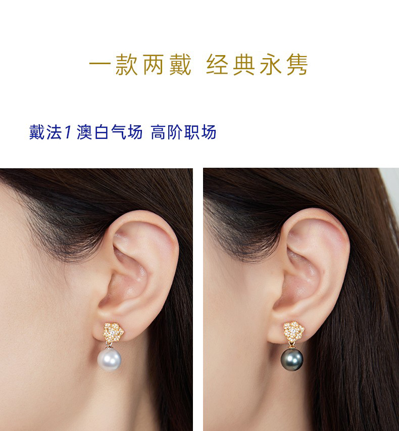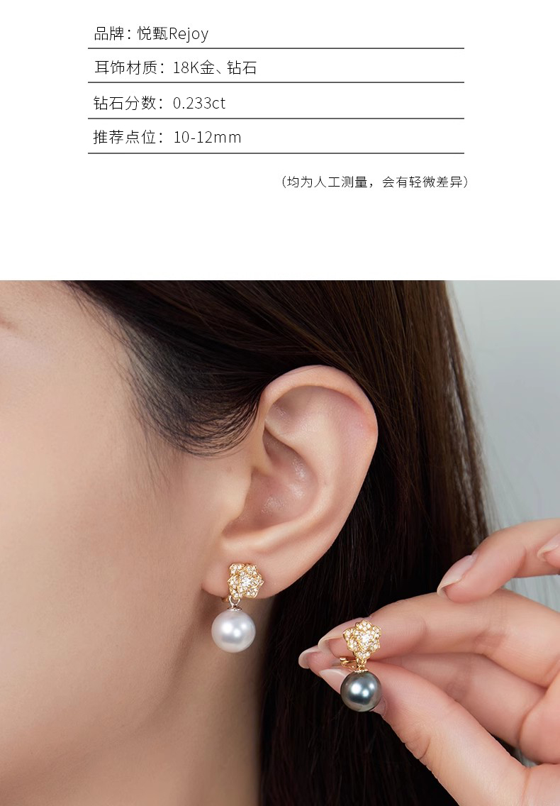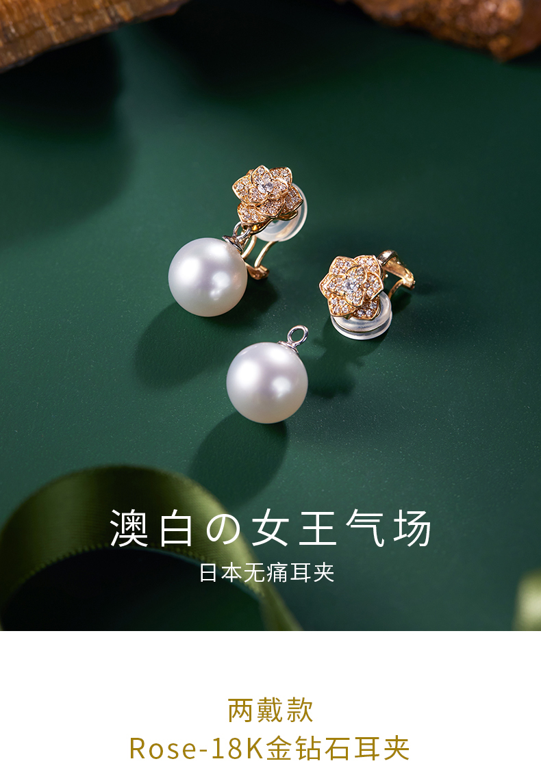 【天猫同款】18K金两戴款钻石珍珠耳夹 Rose