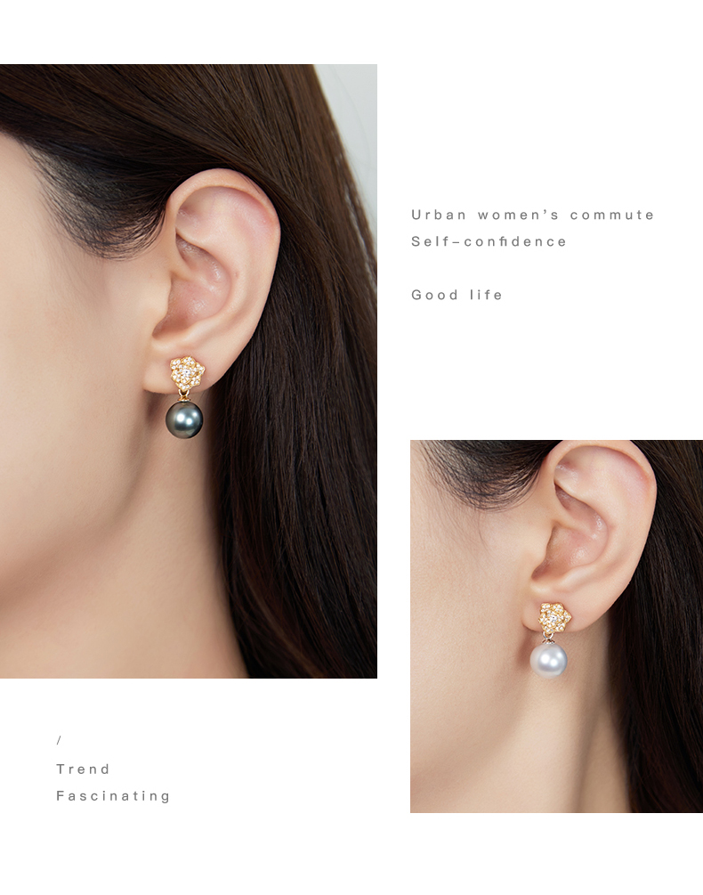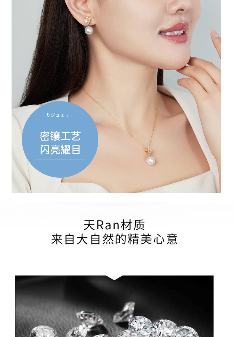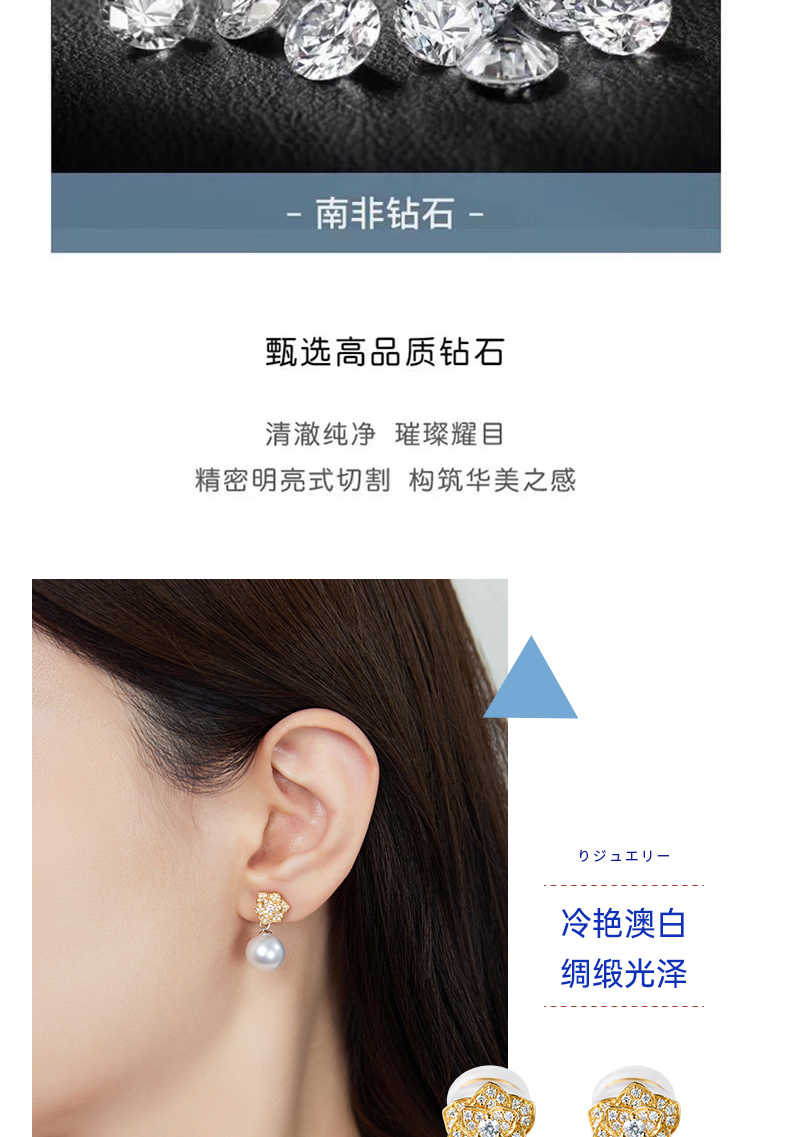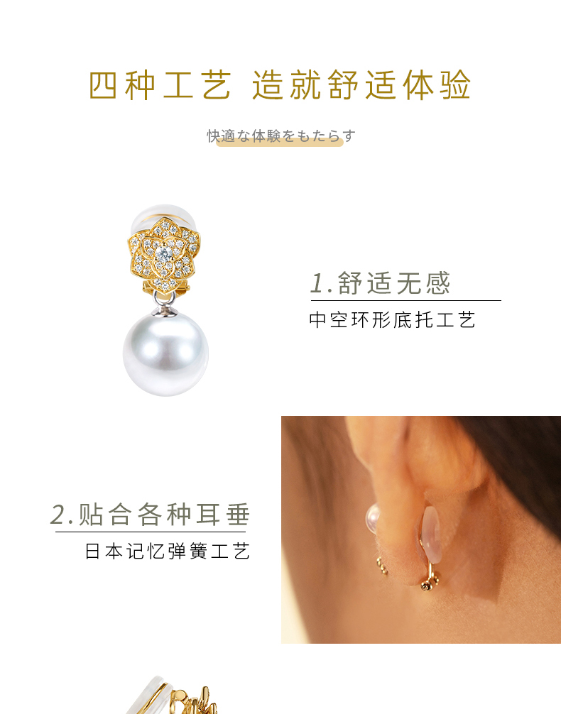 【天猫同款】18K金两戴款钻石珍珠耳夹 Rose