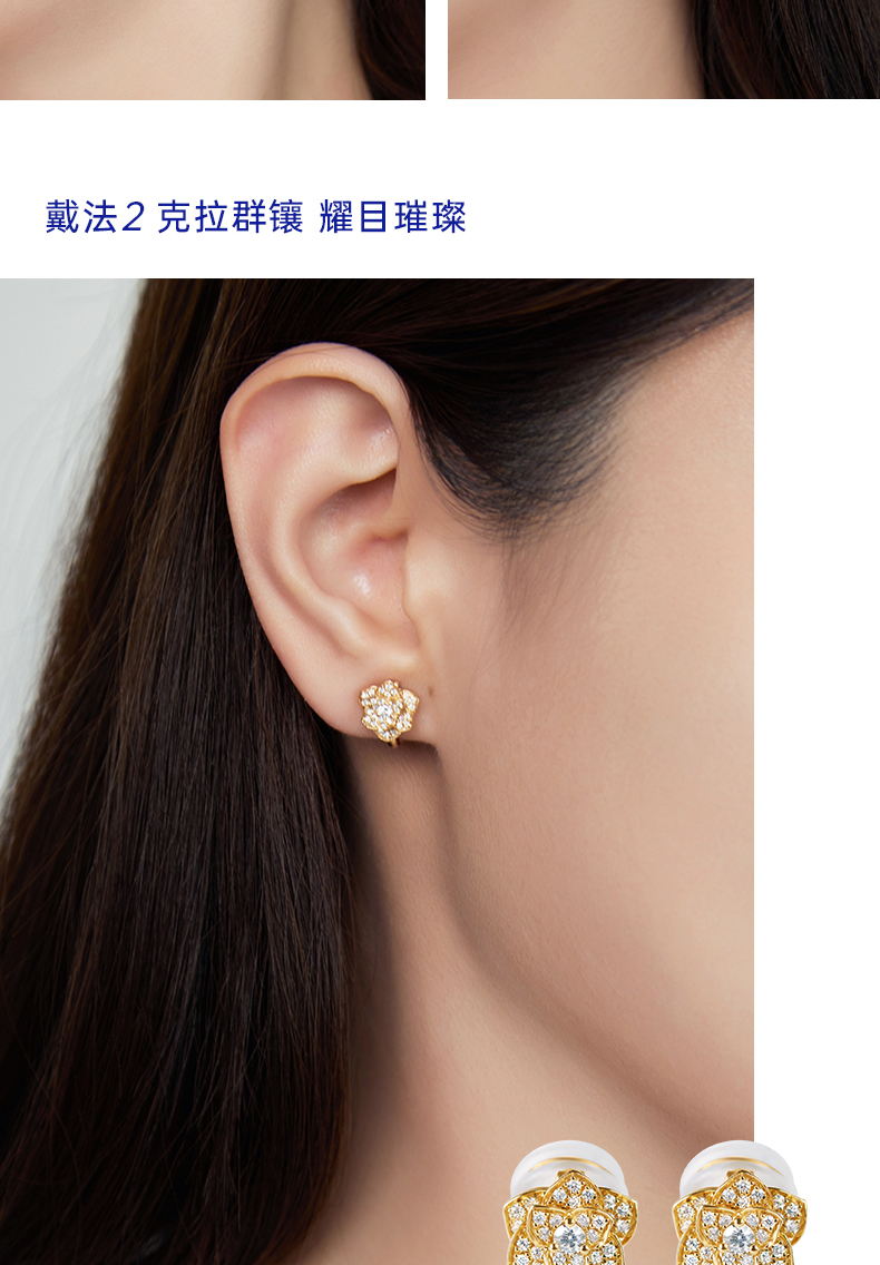 【天猫同款】悦甄18k金钻石耳夹 新叶