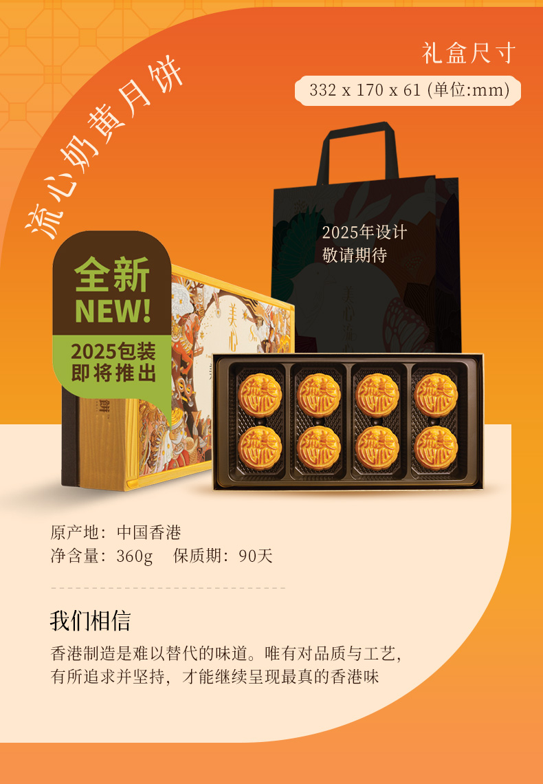 【乐享中秋组合装蛋卷12月到期】香港美心流心奶黄月饼360g*原味鸡蛋卷448g/070034*058537 组合更优惠款款惊喜