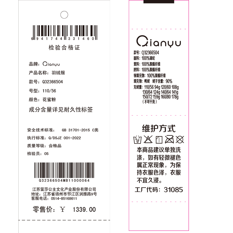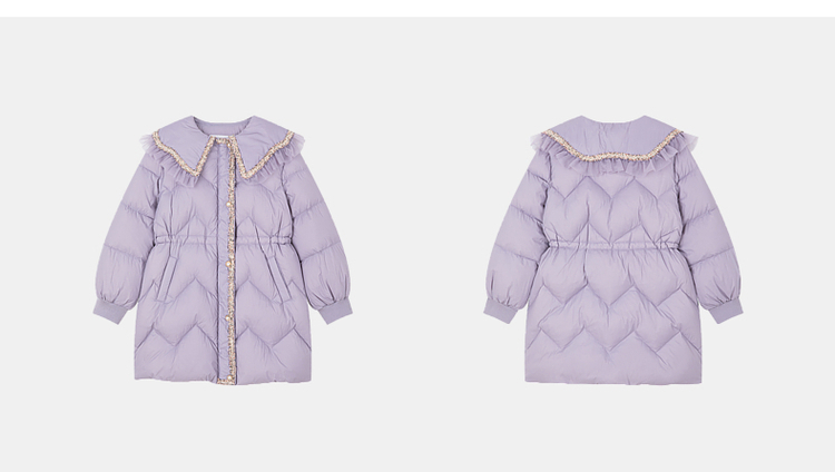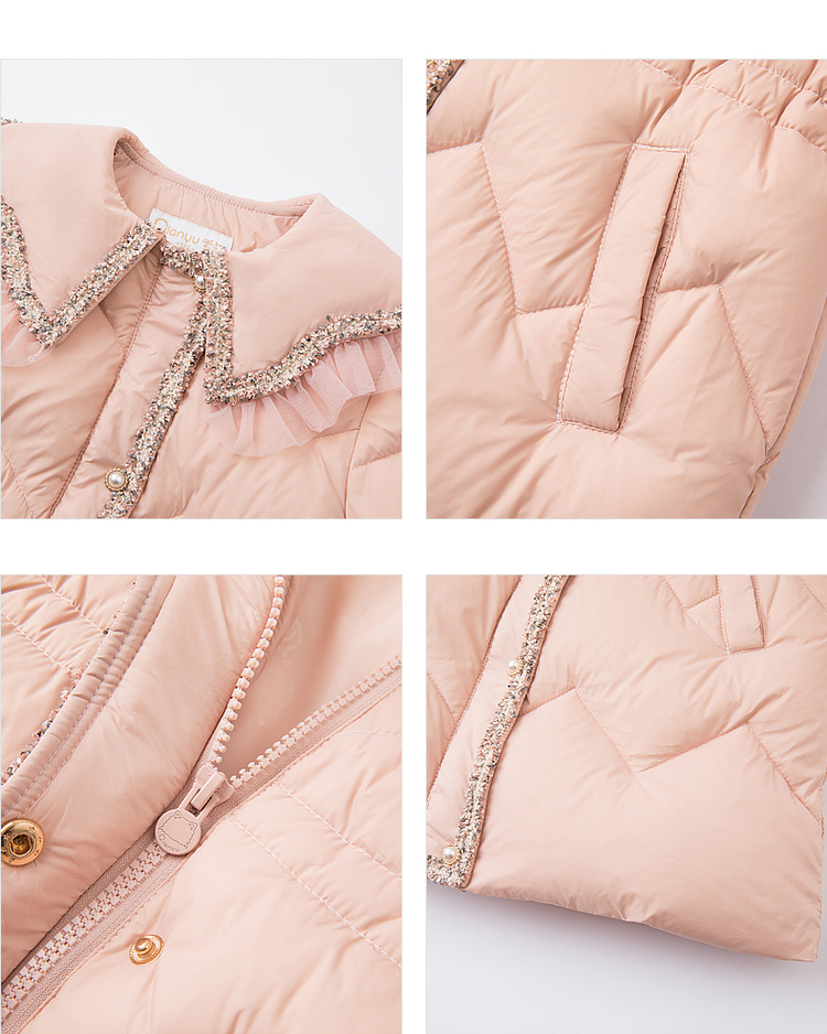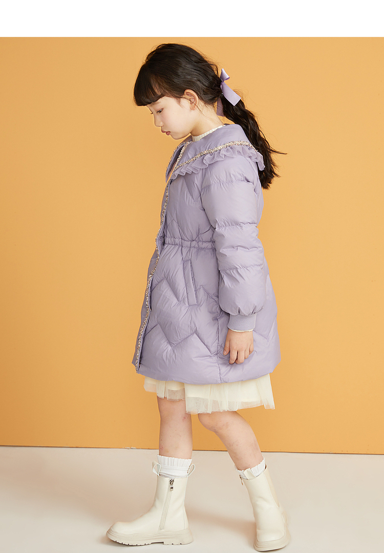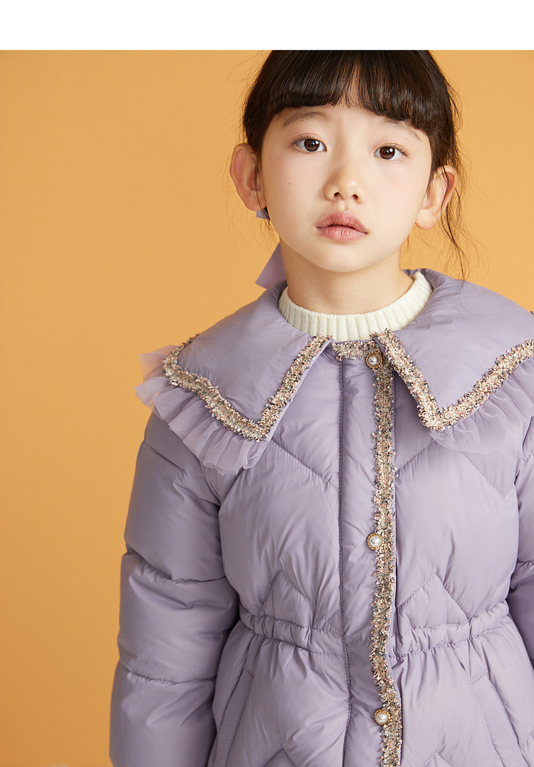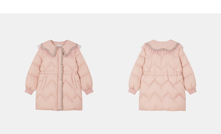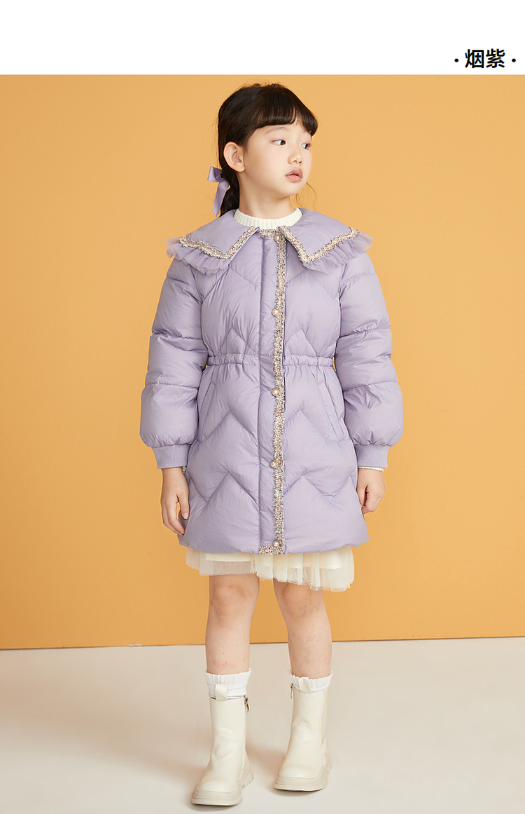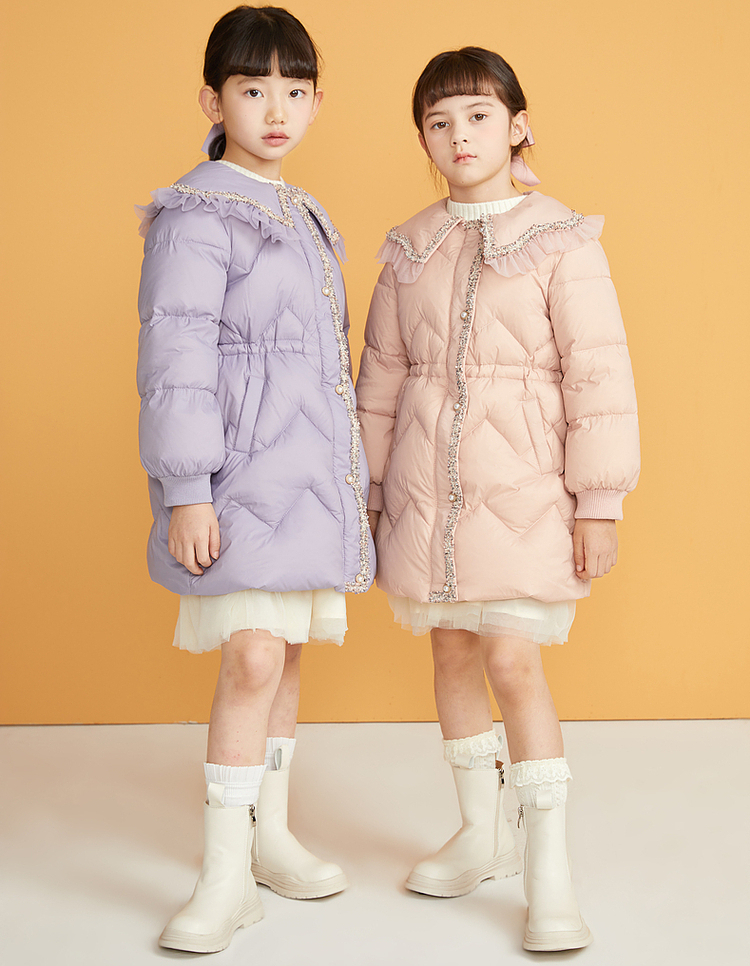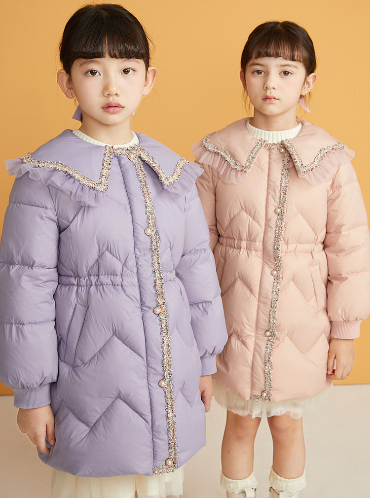 笛莎千与2024冬季新款男女童同款甜美翻领小香风中长款羽绒服