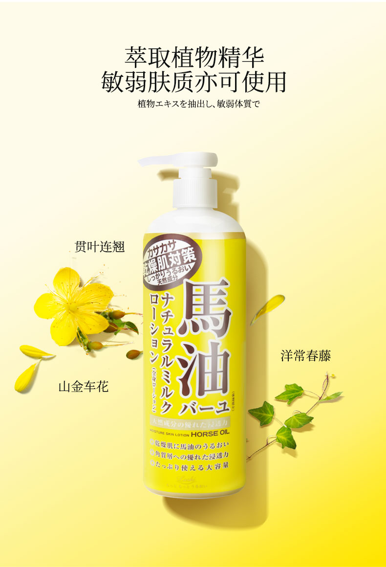 日本乐丝/Loshi马油保湿身体乳液485ml/118160 亲肤不油腻抵御干燥
