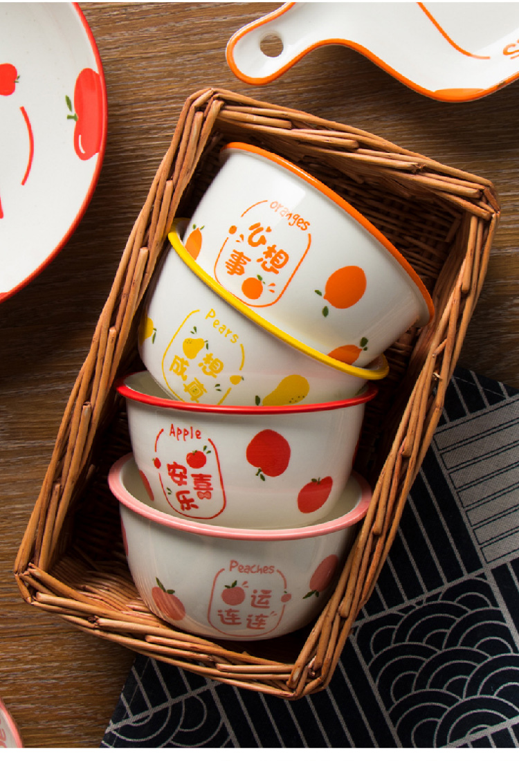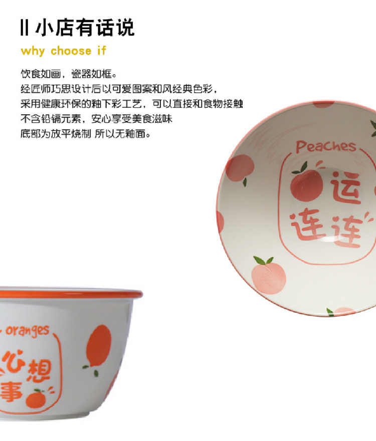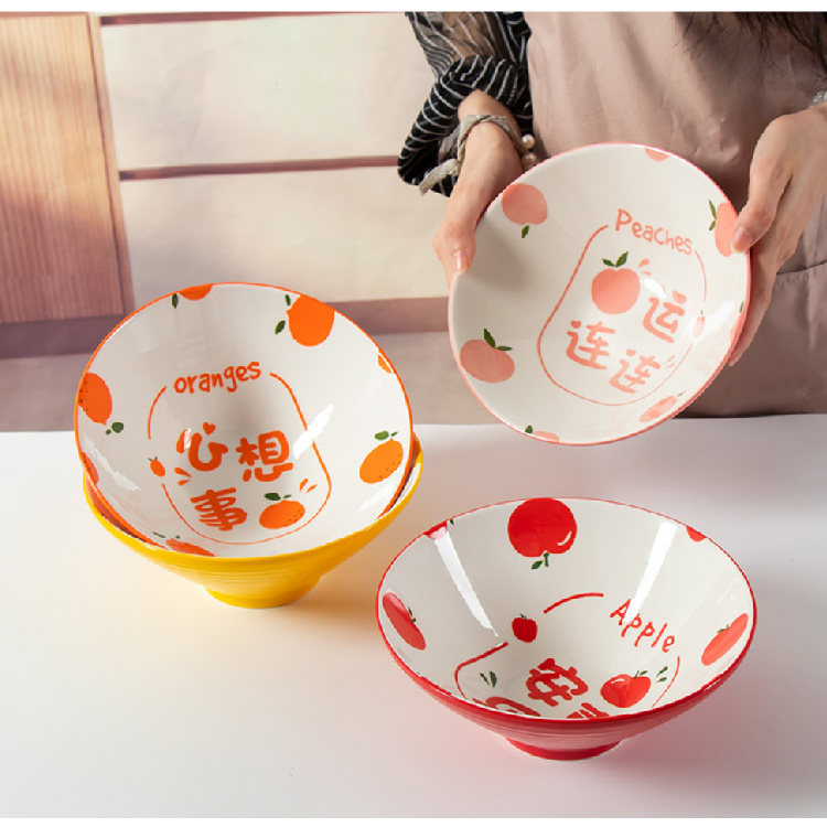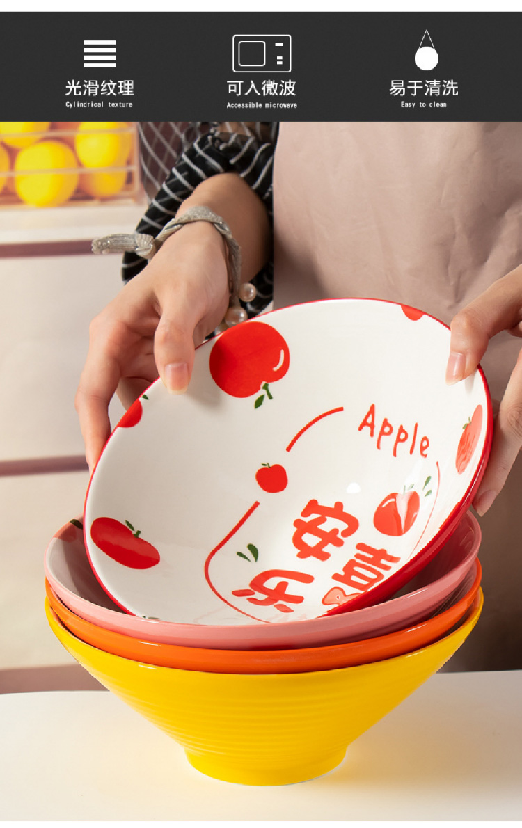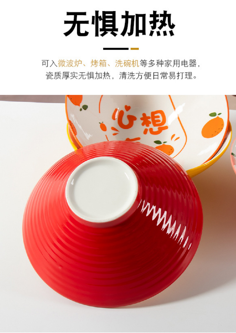 【大号彩碗2个装】家用水果祝福卡通系列陶瓷碗 大号汤碗釉下彩厚边碗