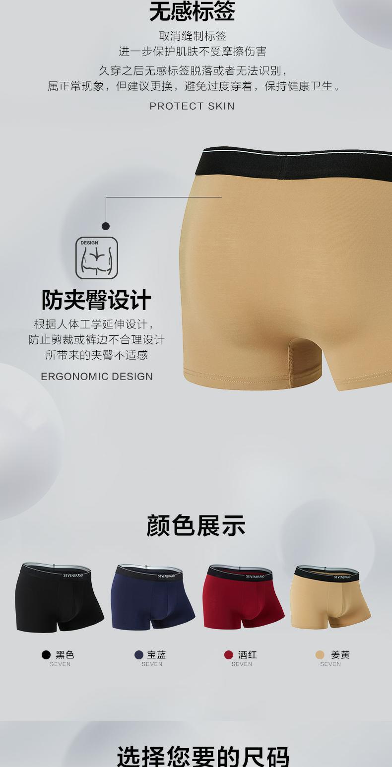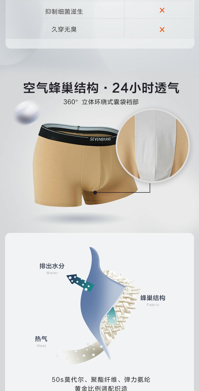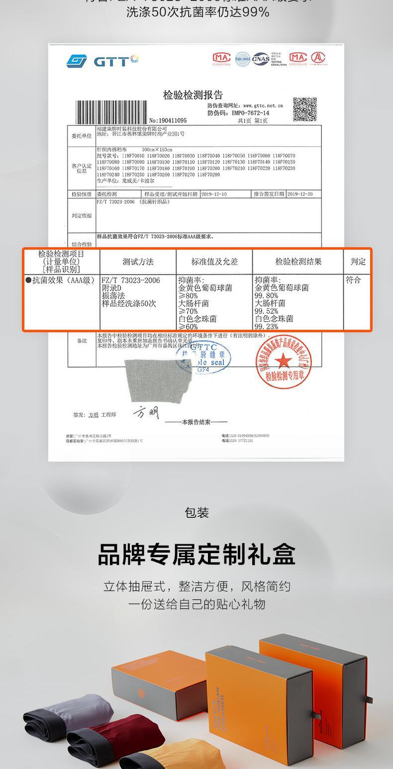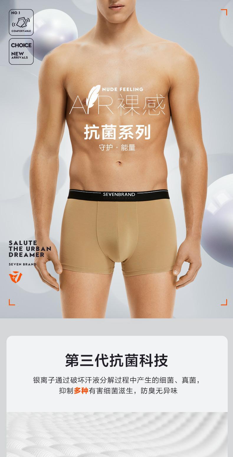 【特价礼盒3条装】柒牌男士平角内裤男弹力透气抗菌底裤新款四角裤头3条礼盒装 118F70060