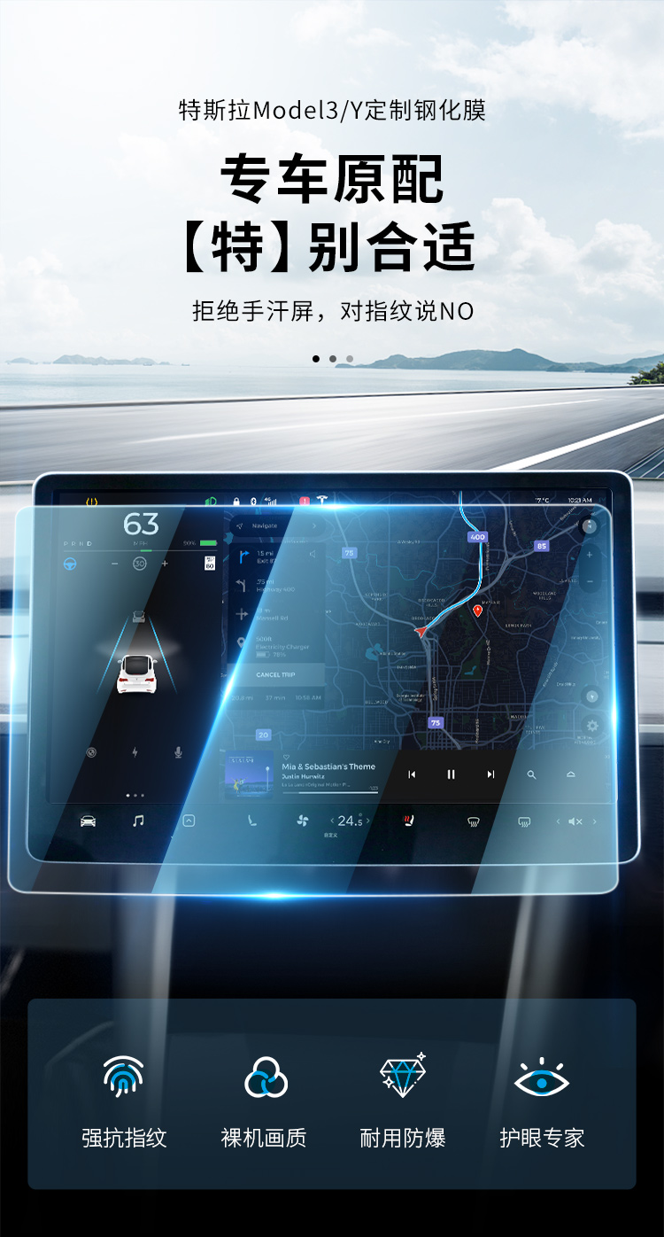 特斯拉屏幕钢化膜中控贴膜model丫屏幕钢化膜model3/y保护膜配件