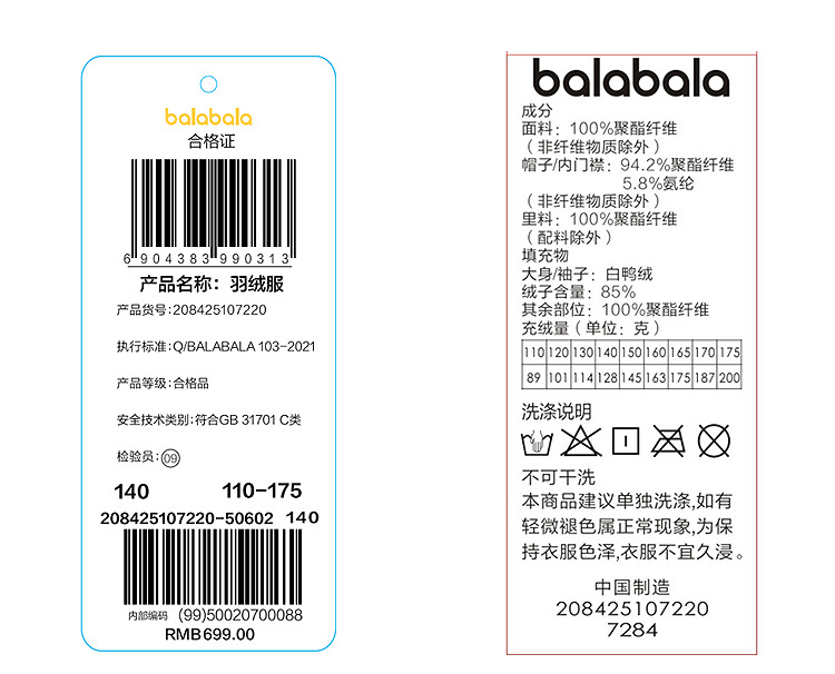 巴拉巴拉balaOne儿童羽绒服女户外防风男童保暖冬2025新款假两件