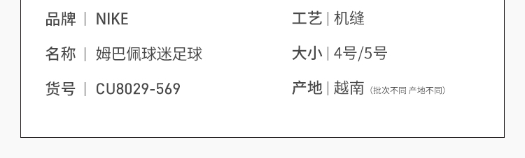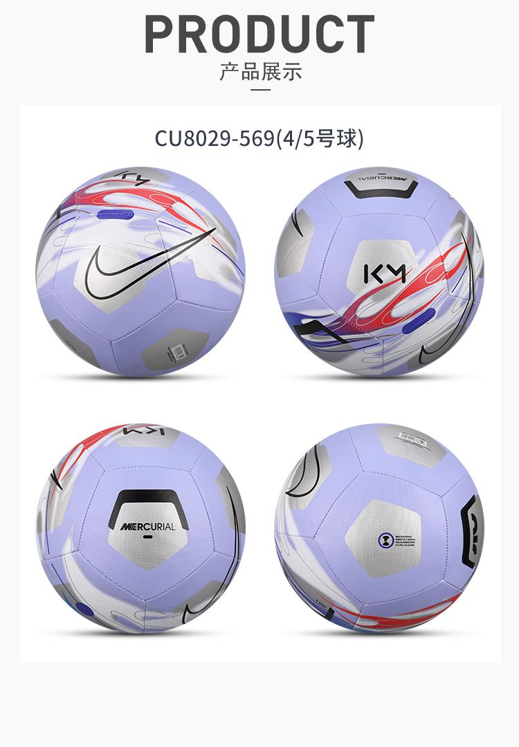 NIKE/耐克姆巴佩配色机缝4/5号训练足球成人男CU8029-569