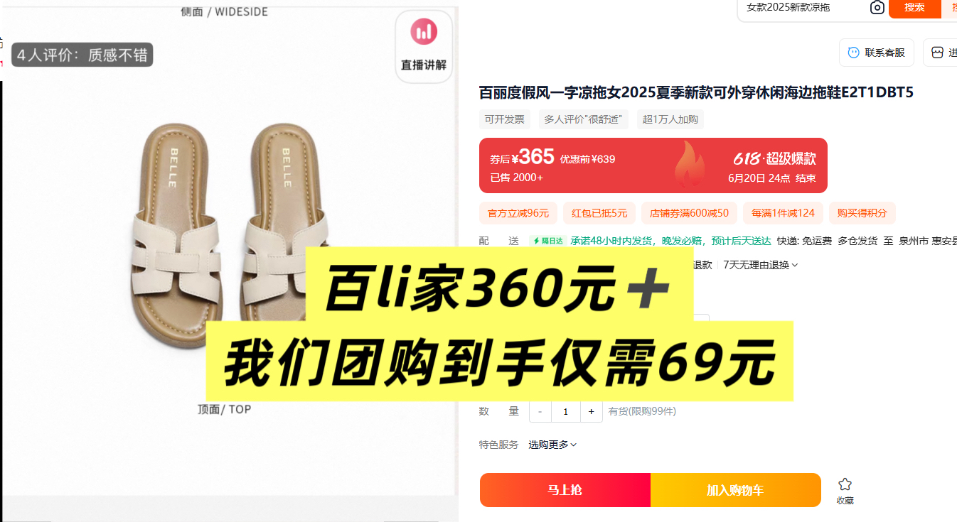 【69元购】度假一字凉拖丨百li同款360+ 夏日半托 海边休闲 商品图2