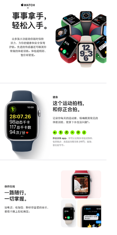 【2022开学季】Apple Watch SE 智能手表 GPS款 40毫米米金色铝金属表壳 星光色运动型表带MKQ03CH/A