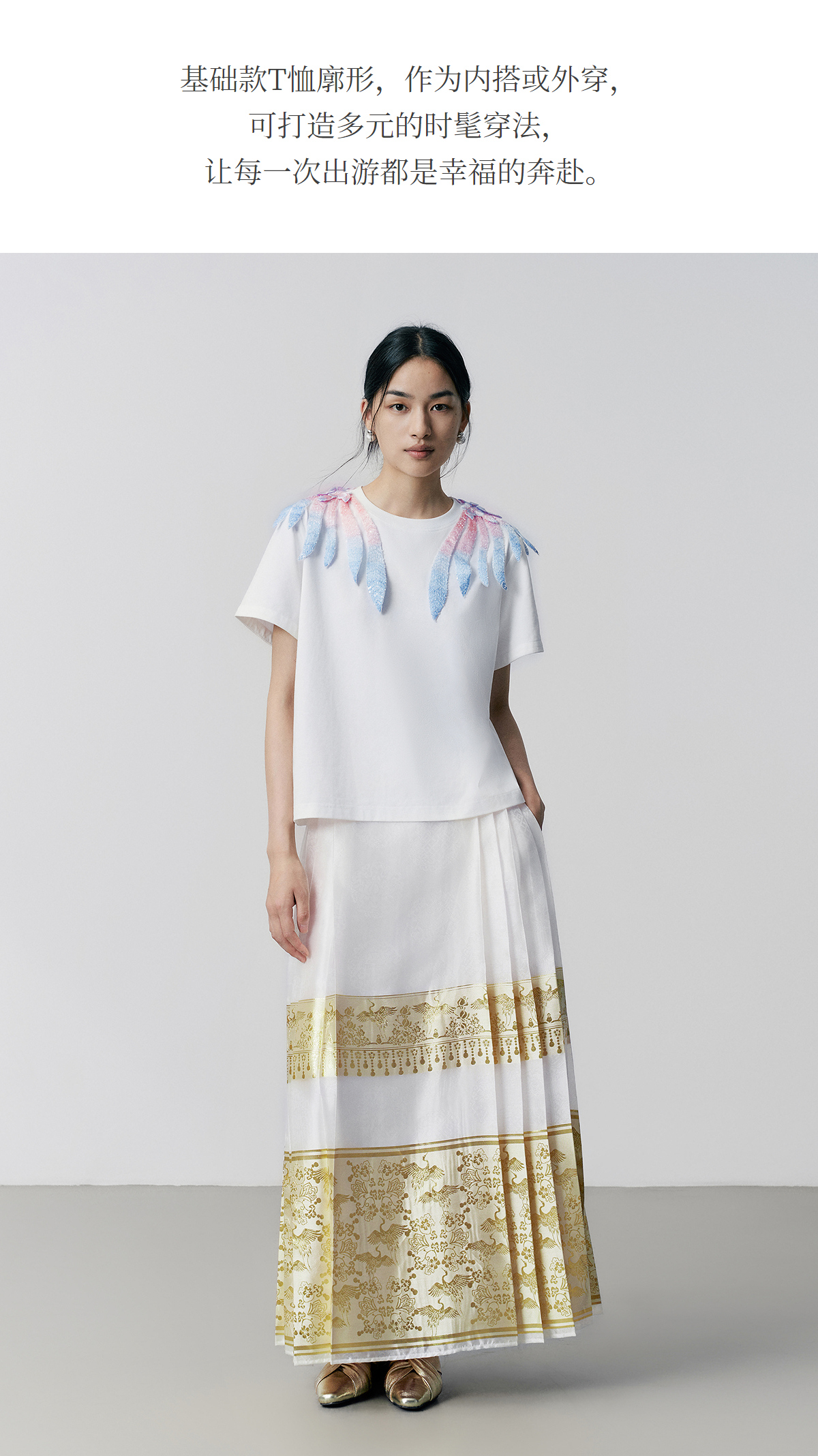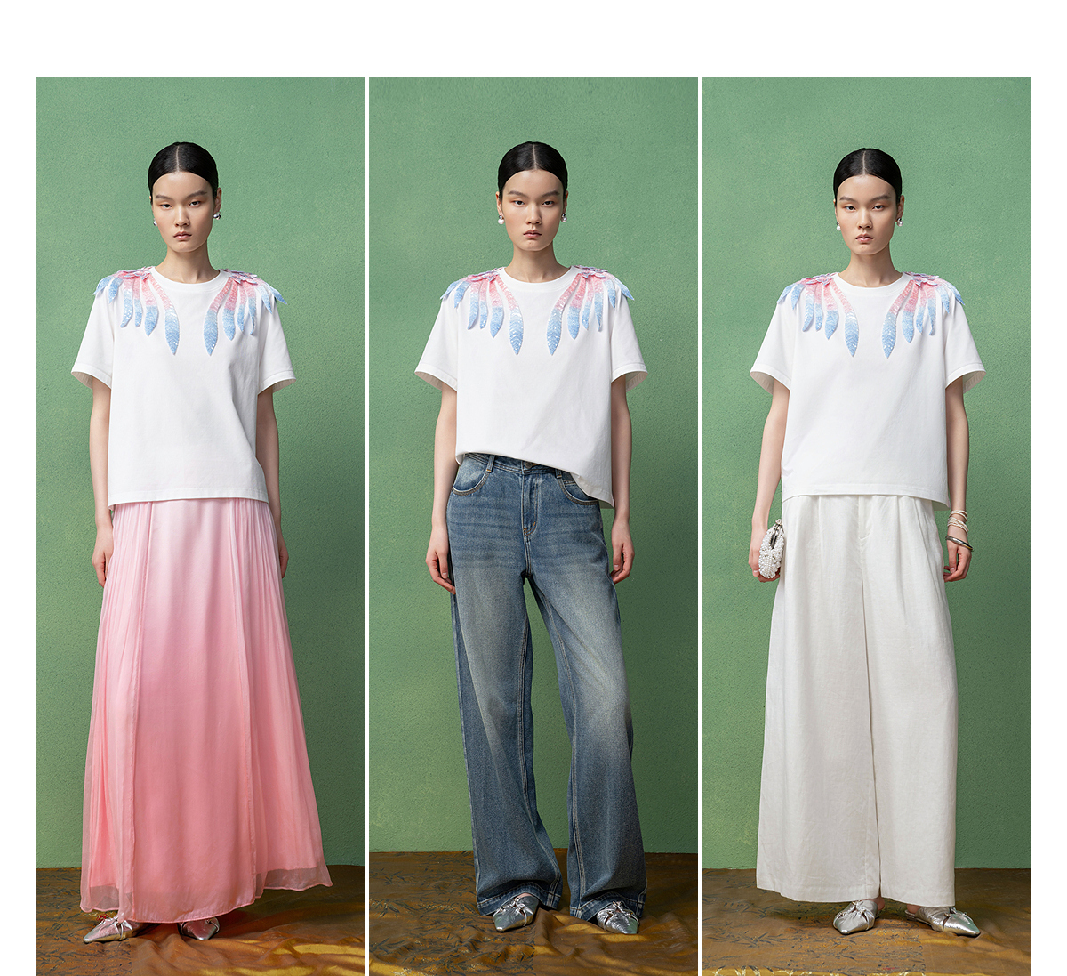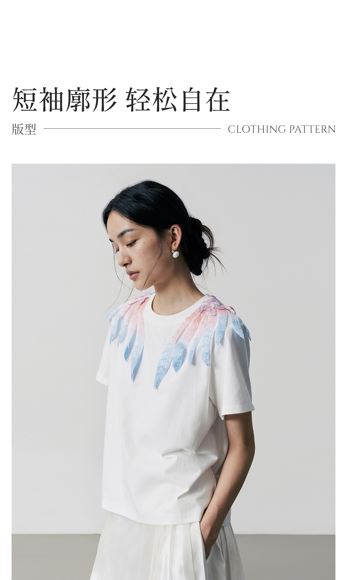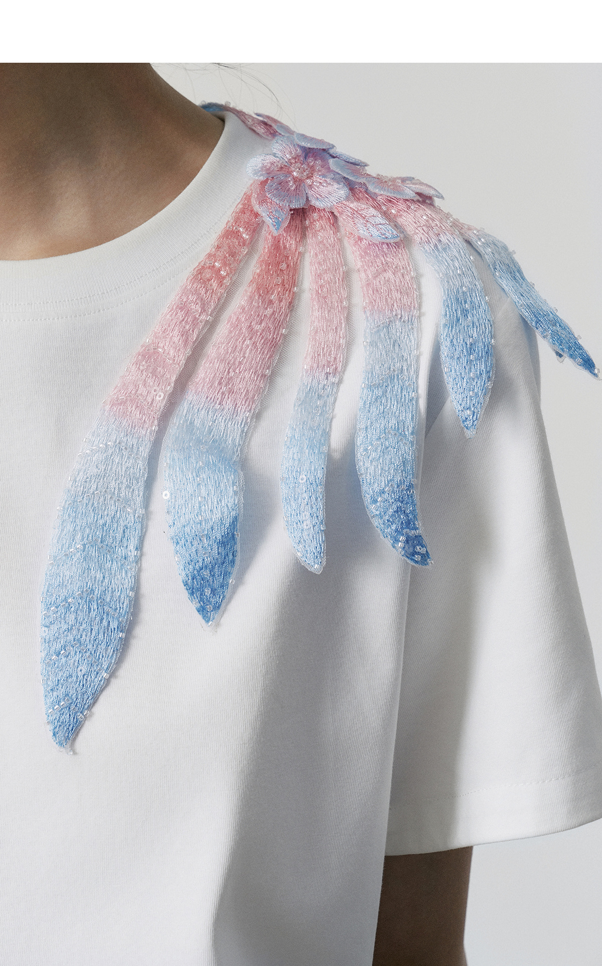 【林栖设计小店】【孟庭苇同款】手工钉珠T恤绣花2025秋季新款渐变上衣女T1953214