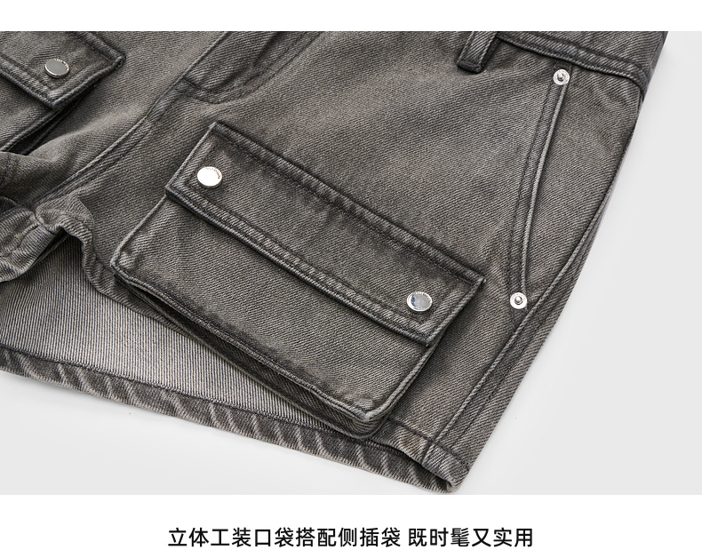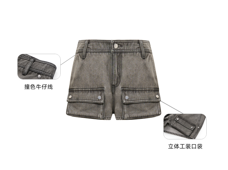 lost in echo2025春夏新款时髦灰色工装口袋低腰迷你牛仔超短裤女