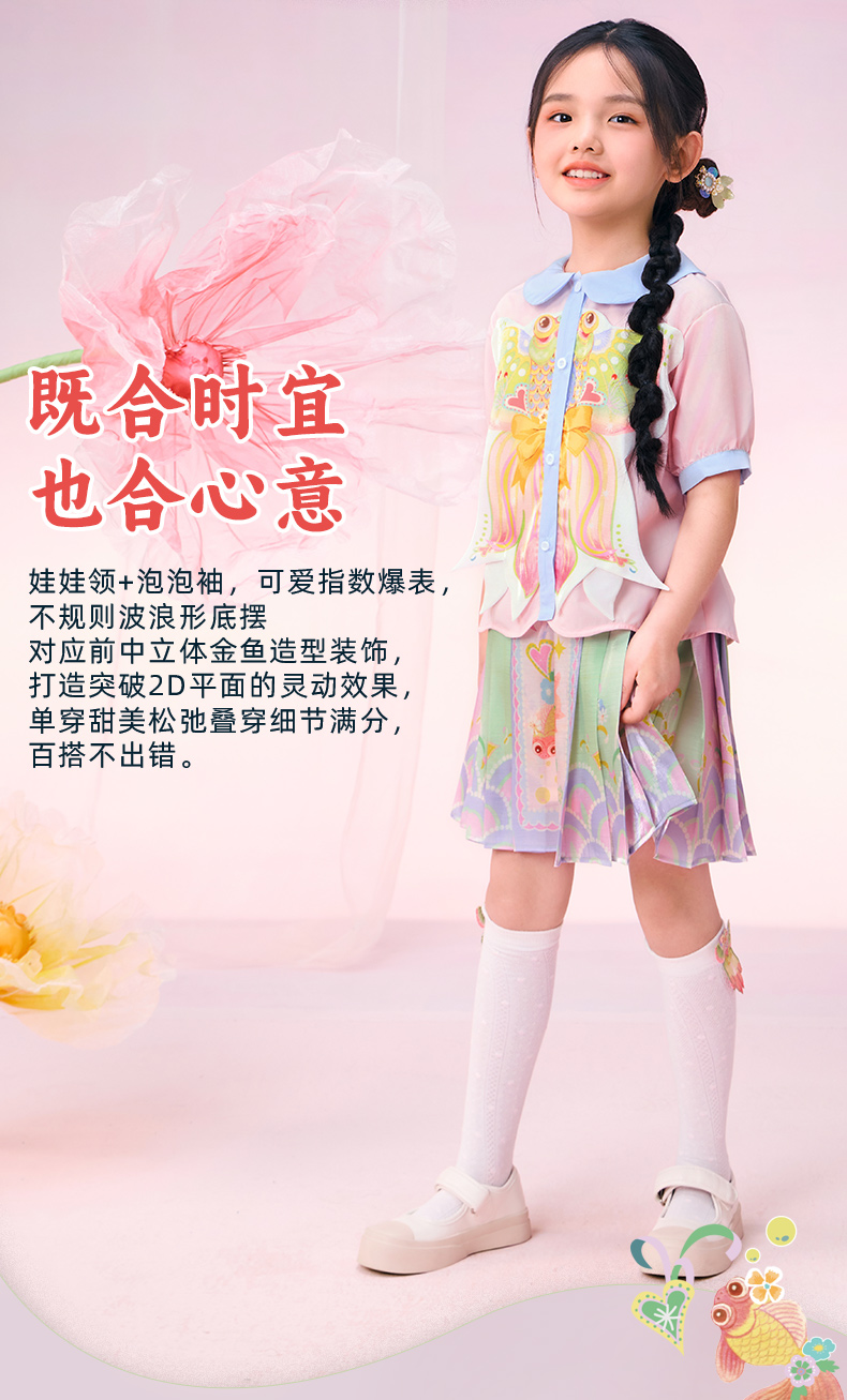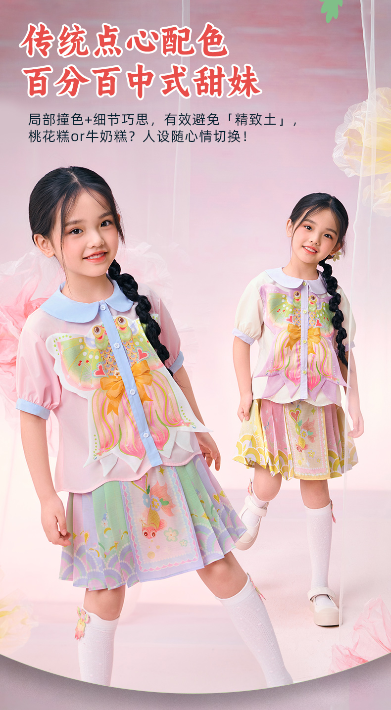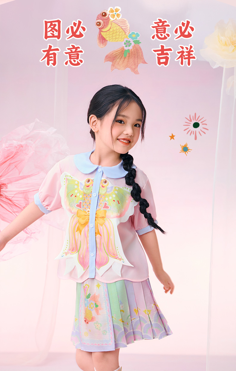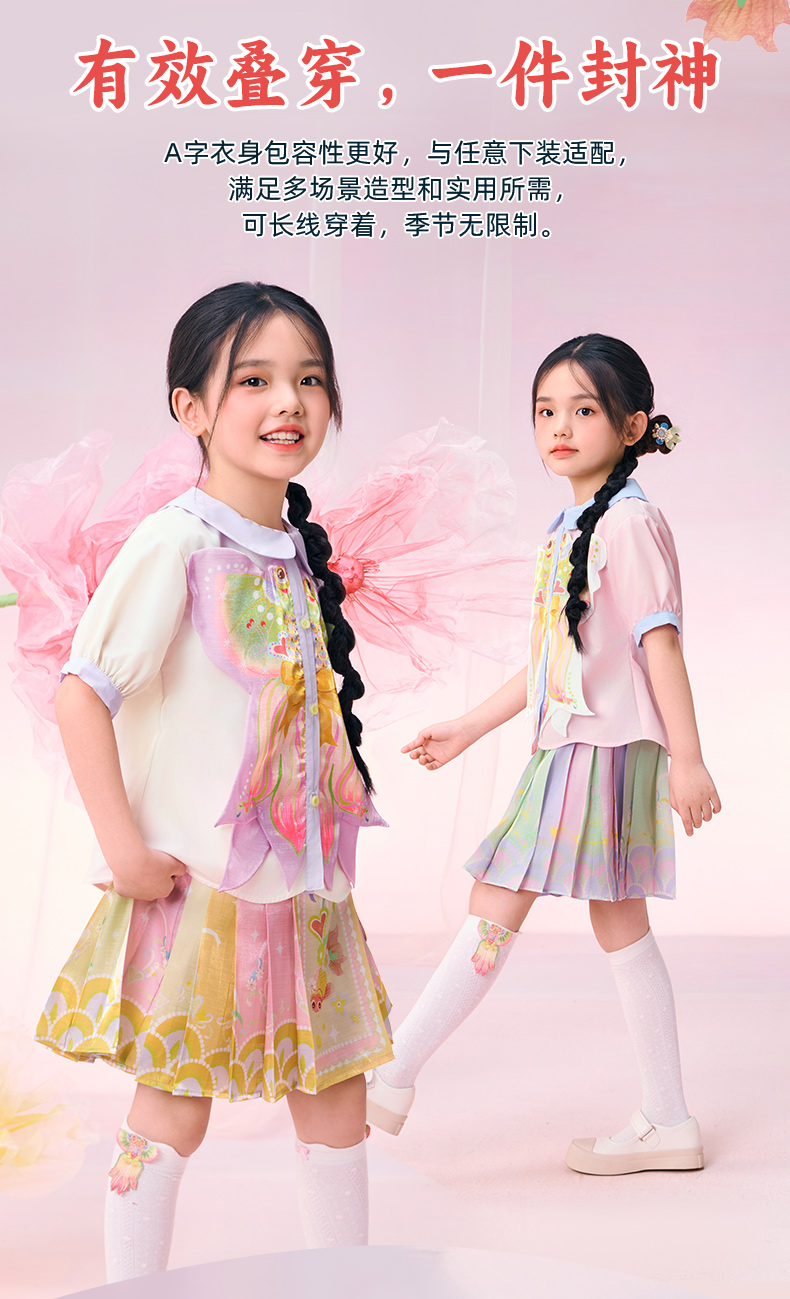 年衣童装女童新中式短袖衬衫2025新款儿童甜美国风金玉年年衬衫