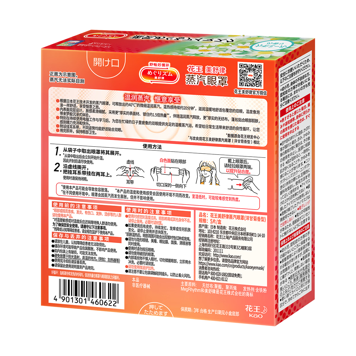 花王美舒律蒸汽眼罩(洋甘菊)5片装