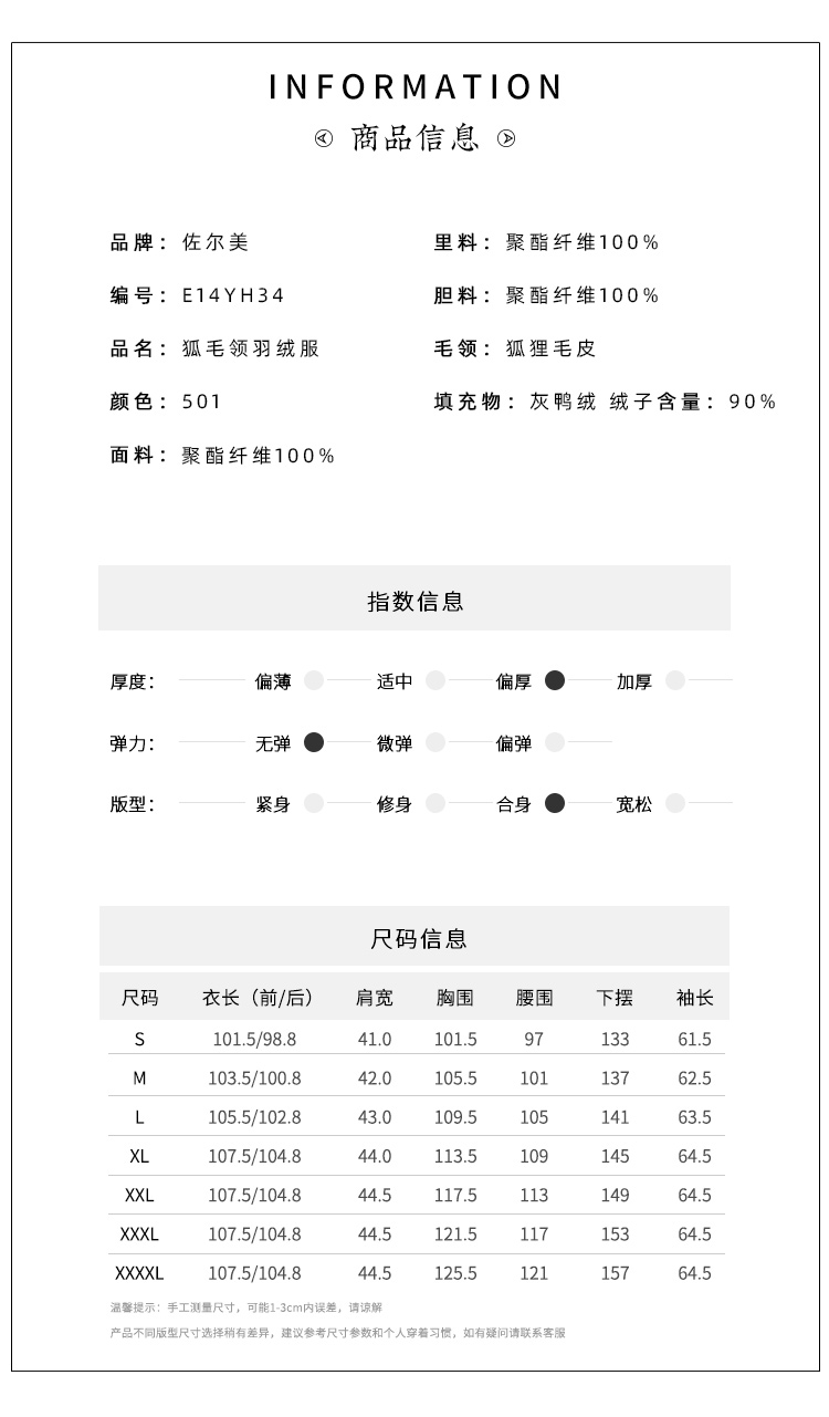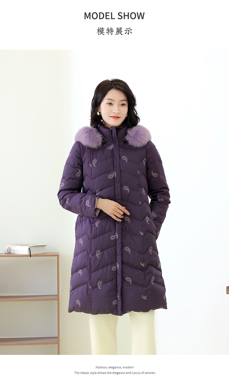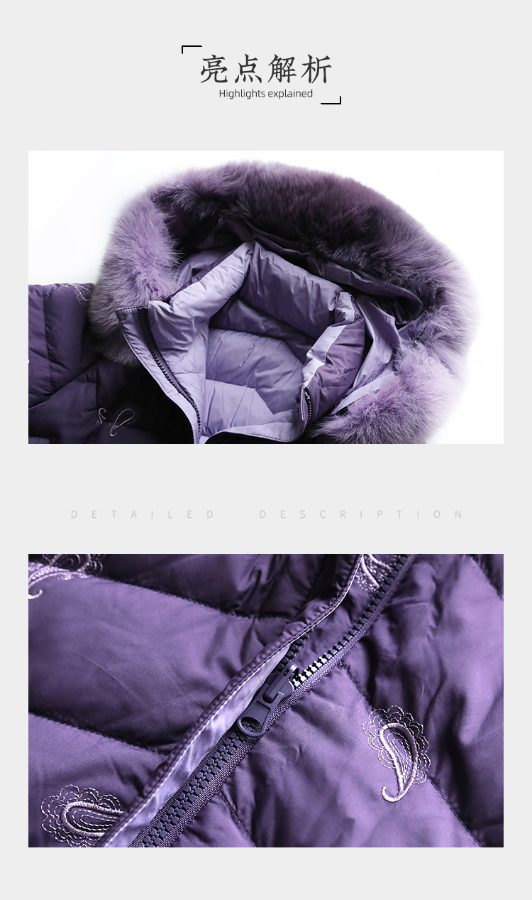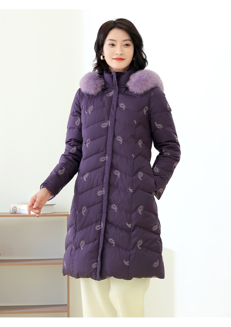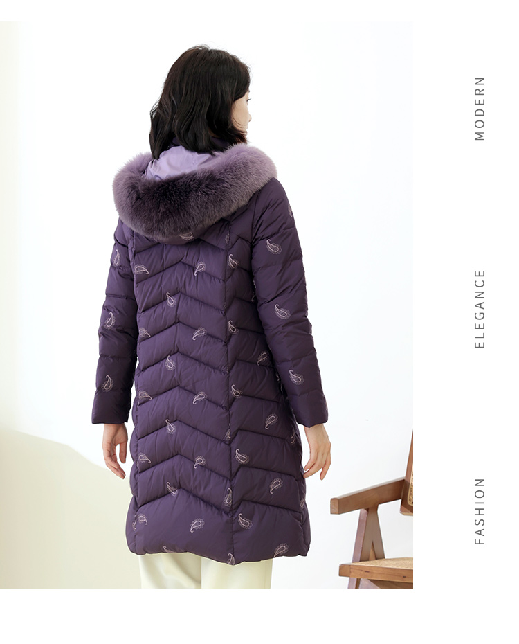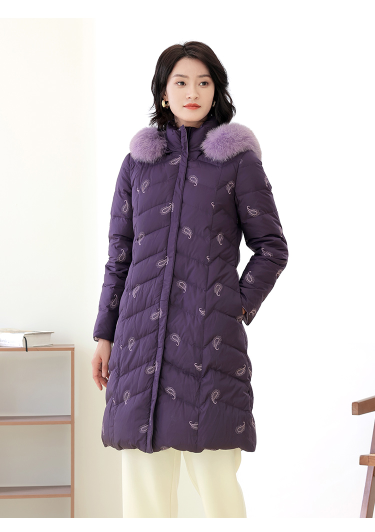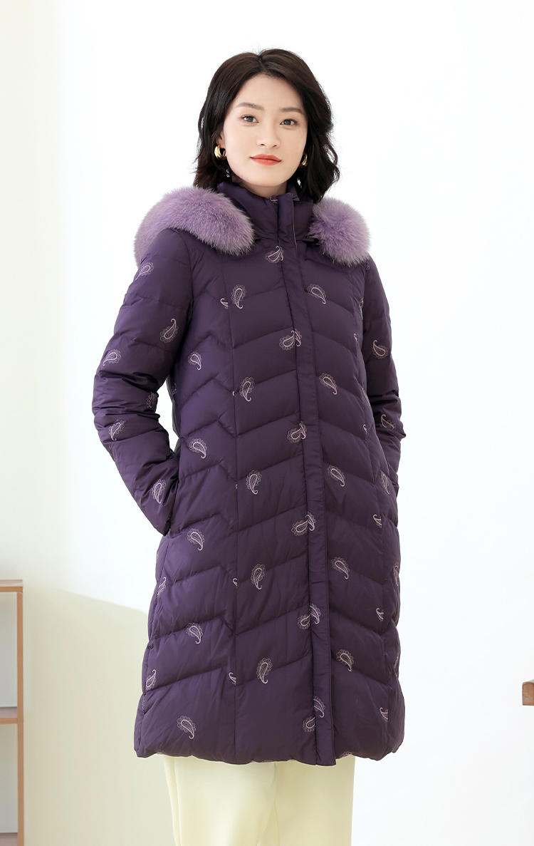 佐尔美秋季新款 休闲时尚可拆小碎花狐毛领羽绒服女E14YH34
