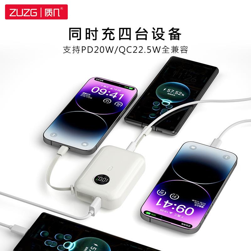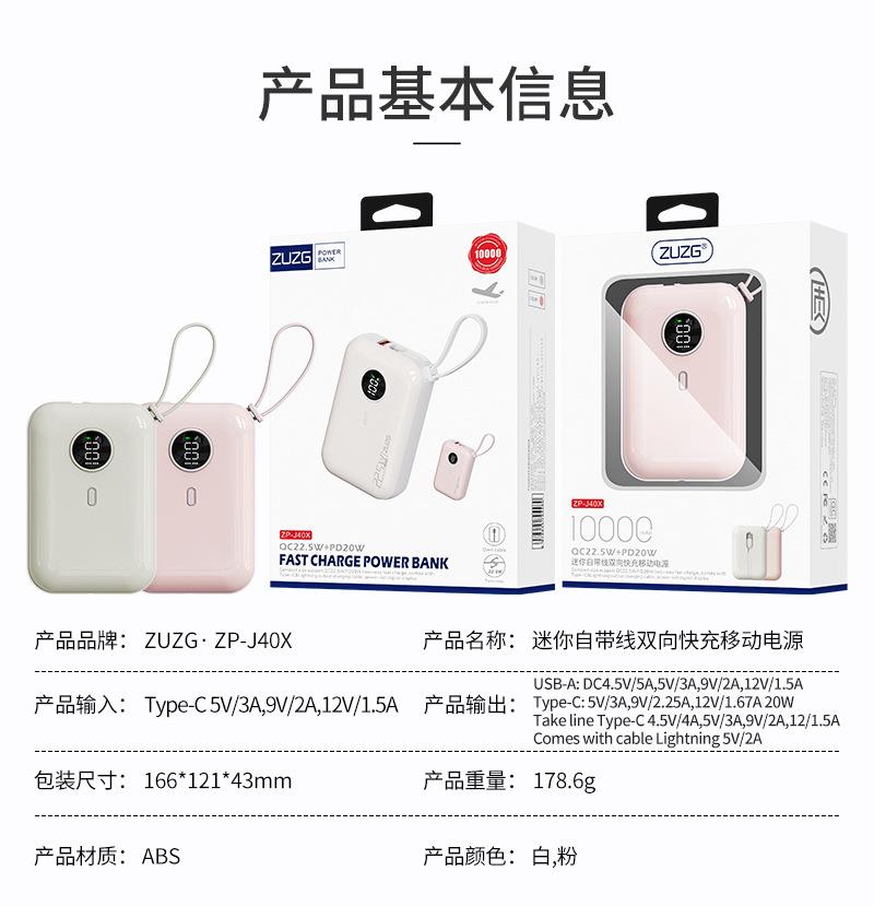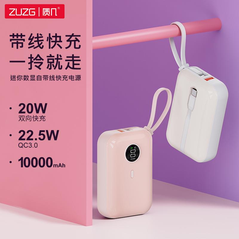 新款 超级快充自带线数显充电宝 10000毫安小巧便携迷你移动电源