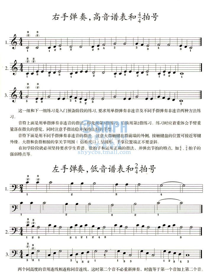 左手弹奏,低音谱表和2/4白号