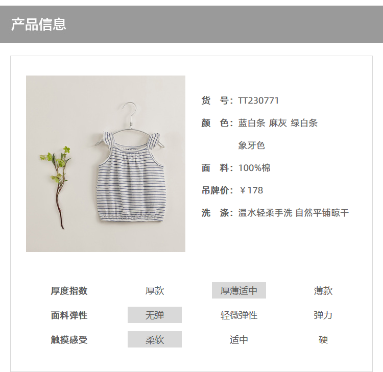【马克珍妮 芦芙】新款夏装 女童夏日清爽针织纯棉背心230771
