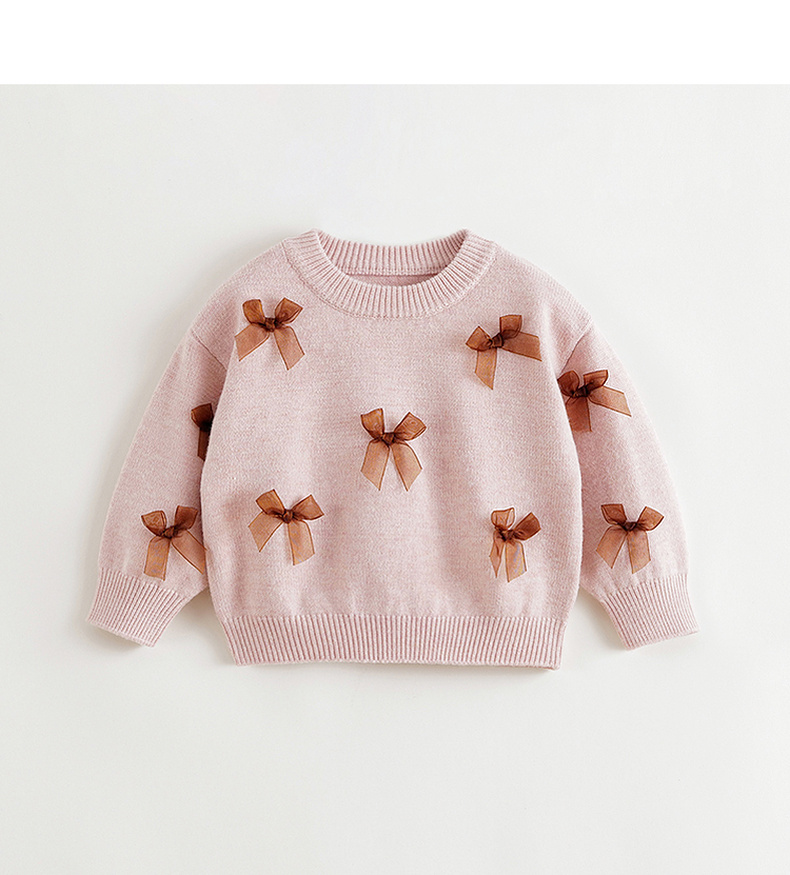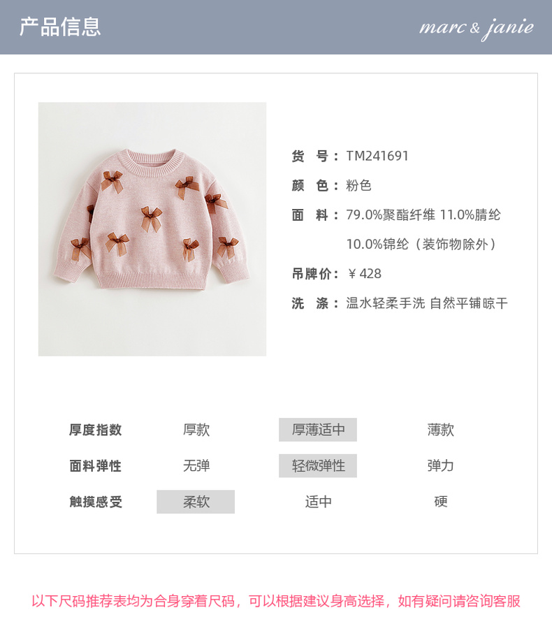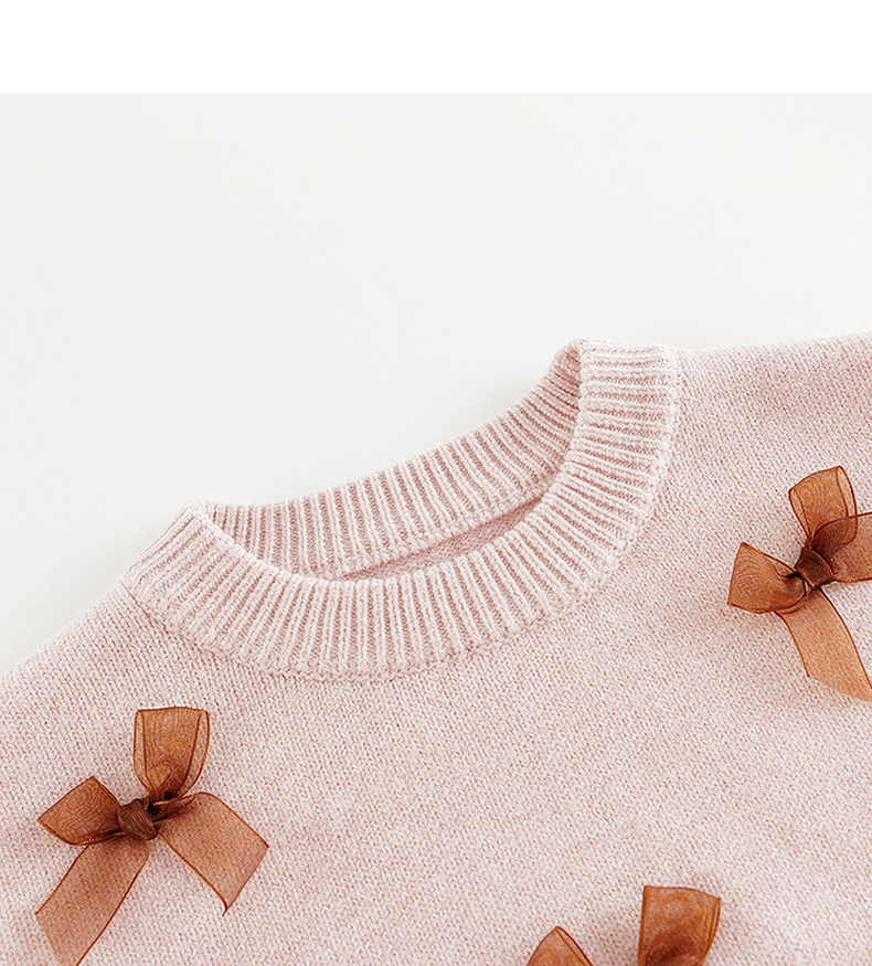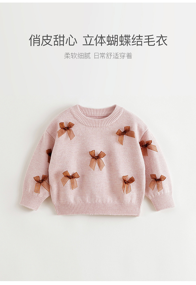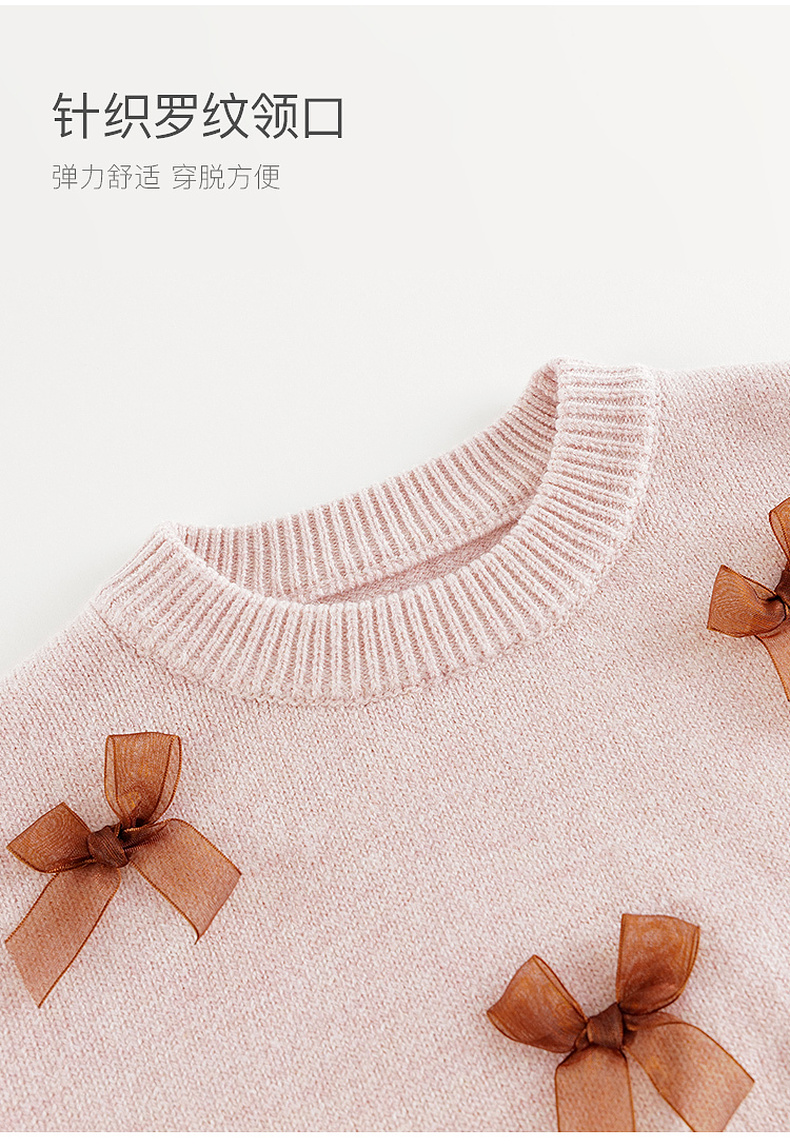 【3级抗起球】马克珍妮女童立体蝴蝶结毛衣宝宝针织衫秋冬241691