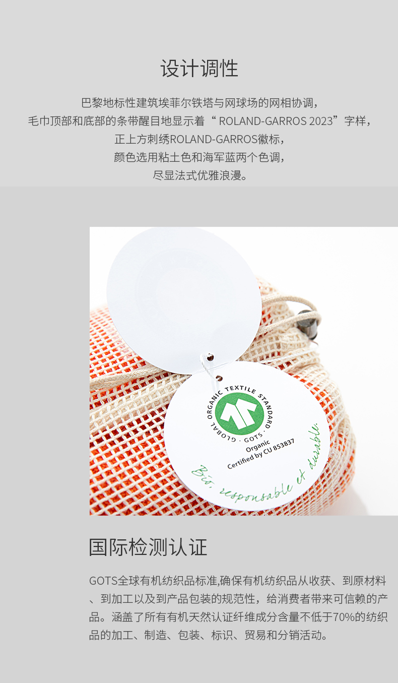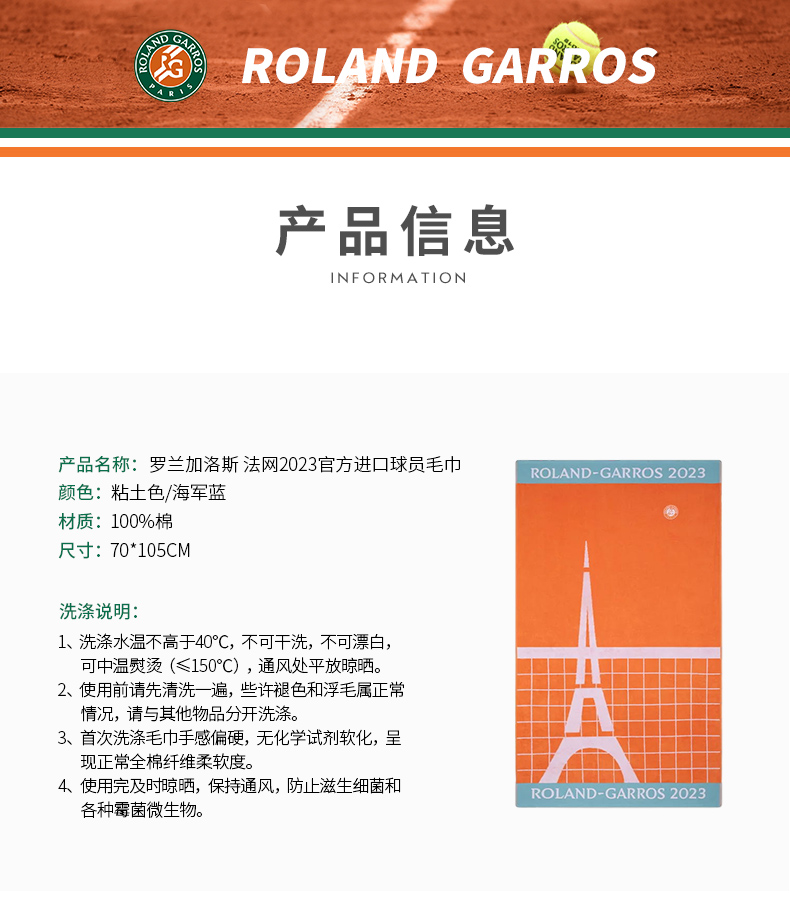 2023法网官方进口正品2023 罗兰-加洛斯球员毛巾 - 海军蓝+红土色