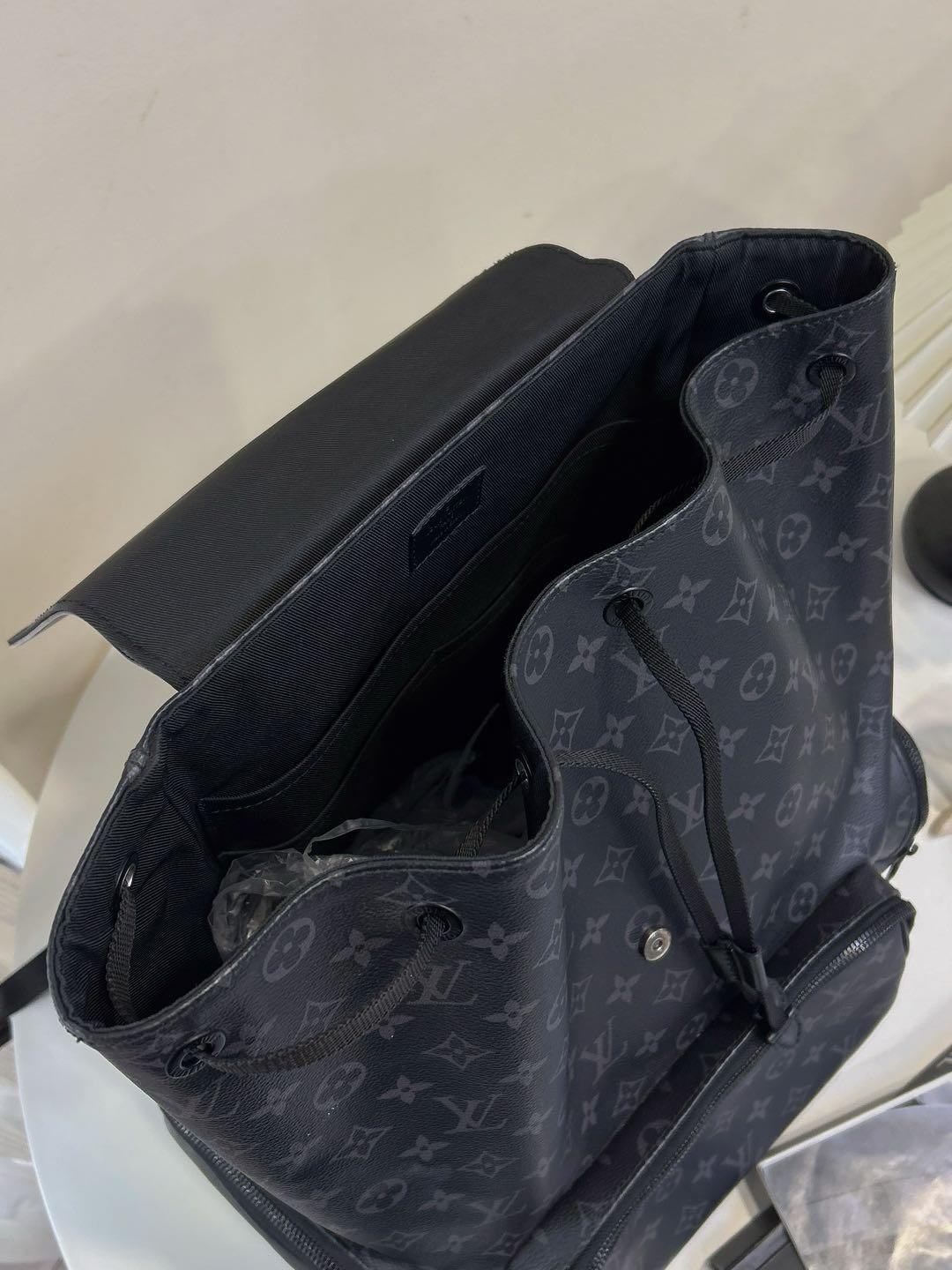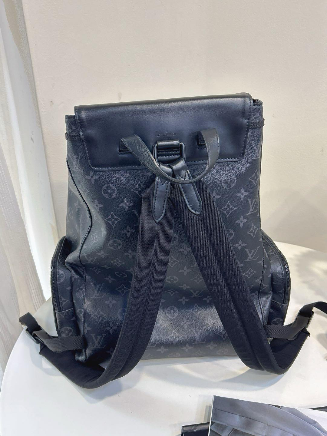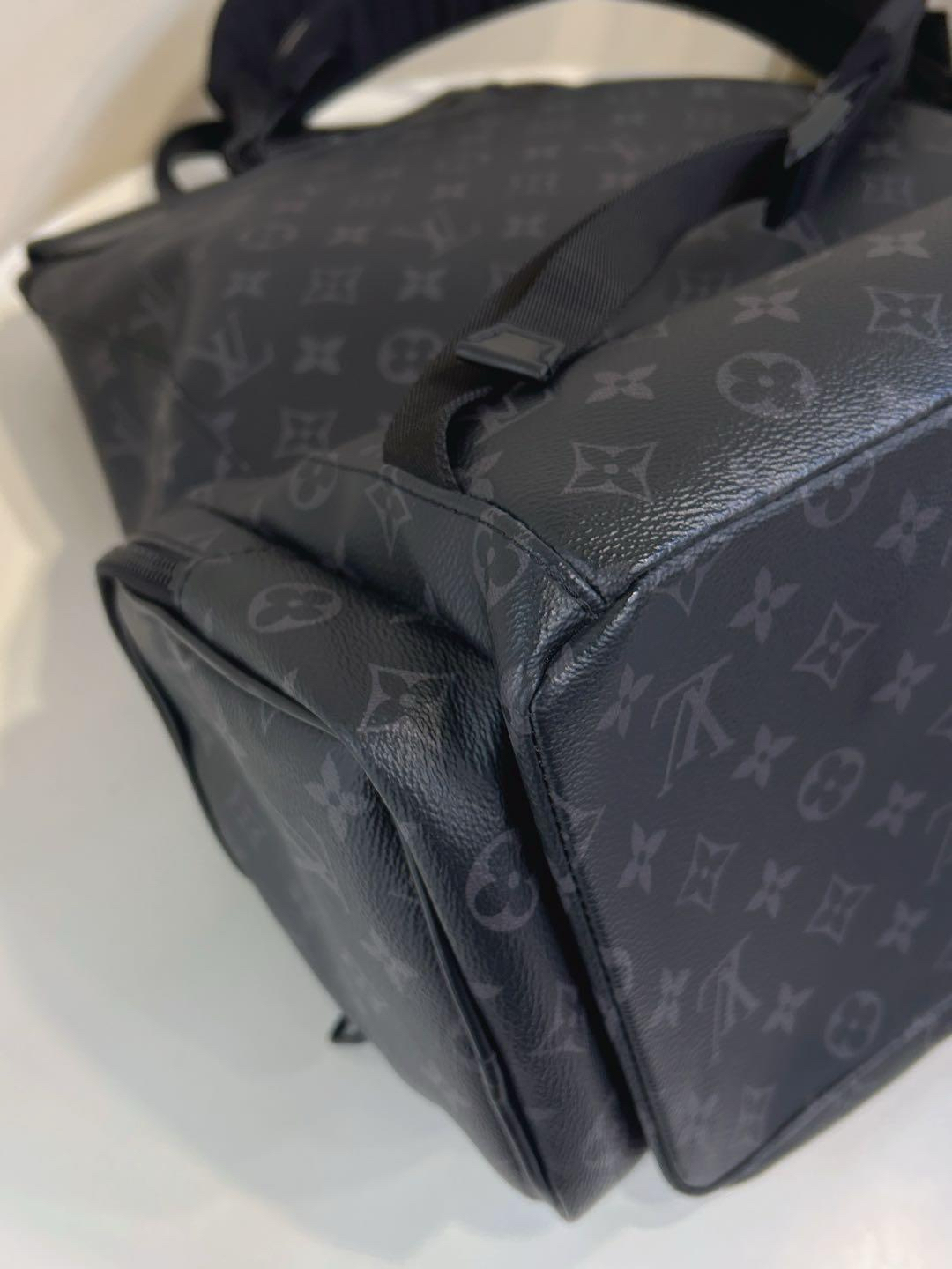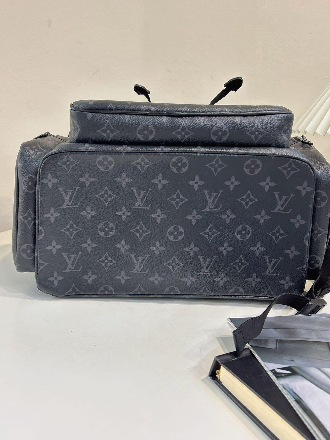 【商品详情】正品二手 LV 黑老花 拼皮 Trio 黑武士 双肩包🍘 97新 31×42。手柄油边处及包带扣油边有轻微融边 翻盖、双肩带及包底有轻微使用痕迹。帅气男包