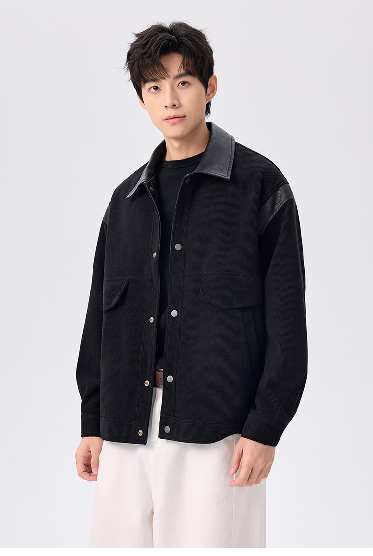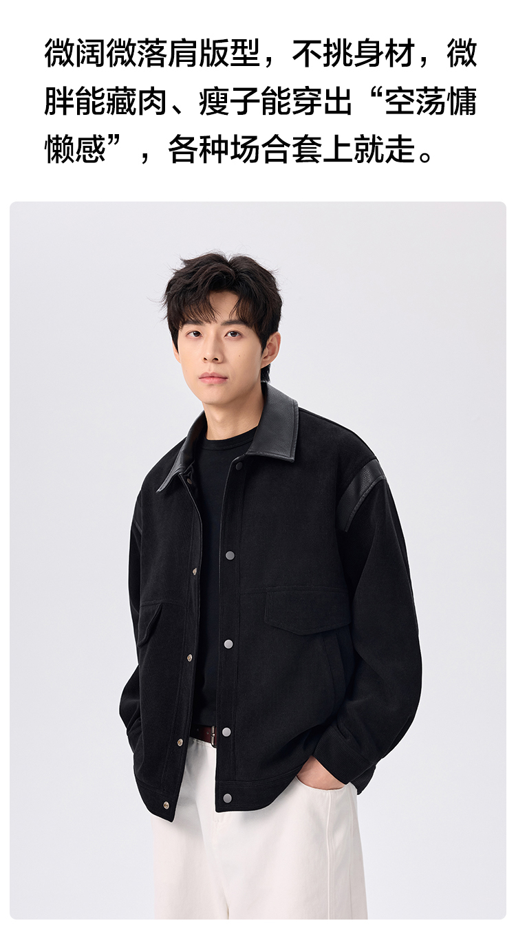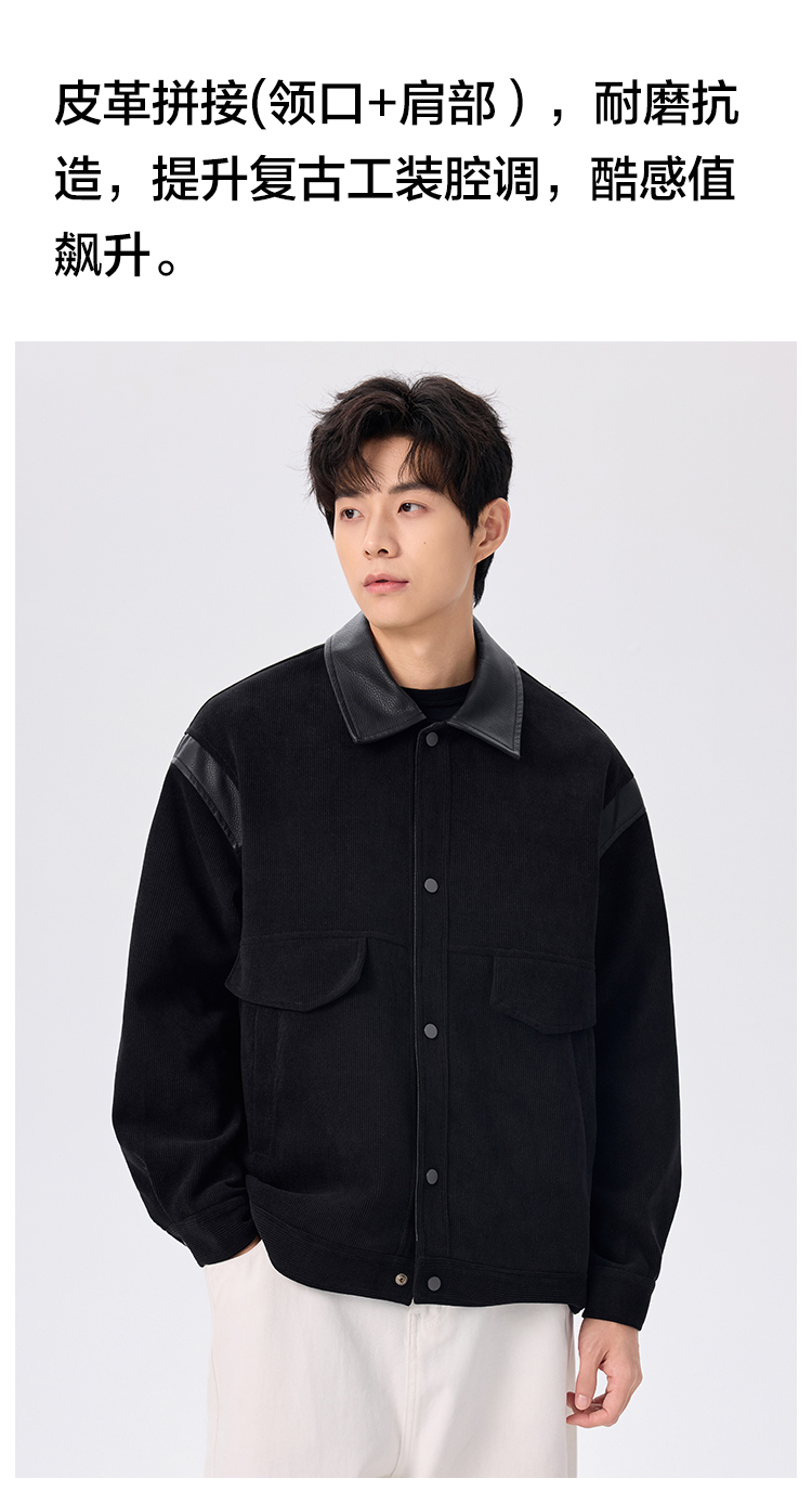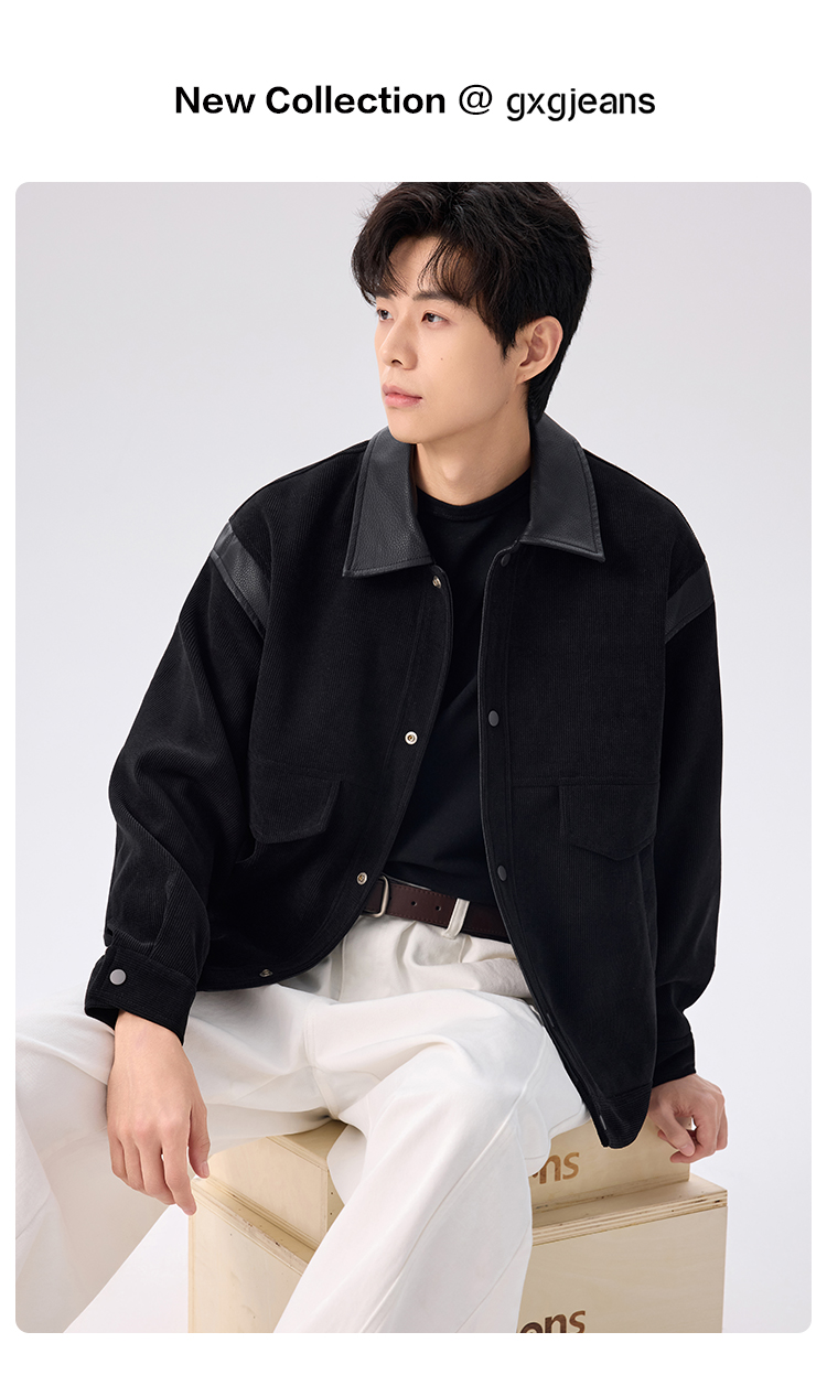 gxg.jeans男装复古拼接男士翻领夹克2025秋款按扣时尚潮流校园通勤外套男K&C