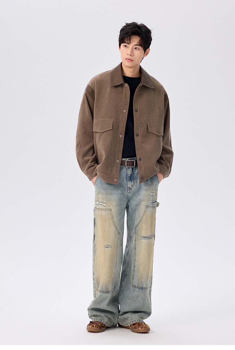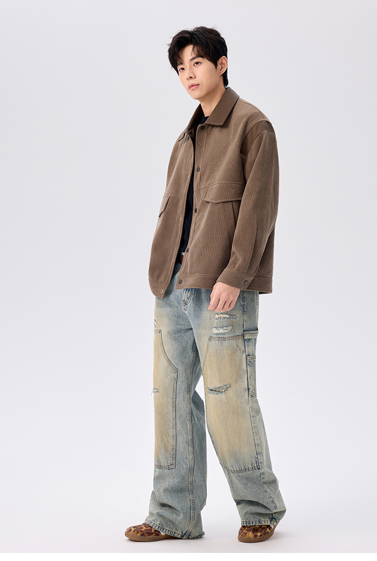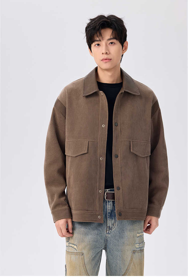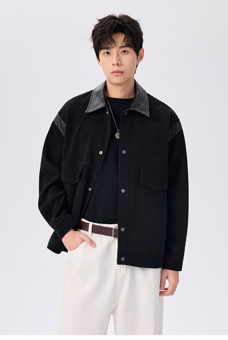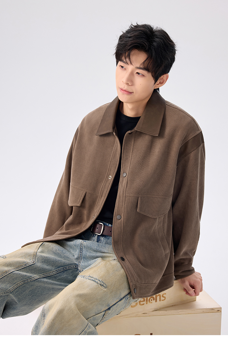 gxg.jeans男装复古拼接男士翻领夹克2025秋款按扣时尚潮流校园通勤外套男K&C
