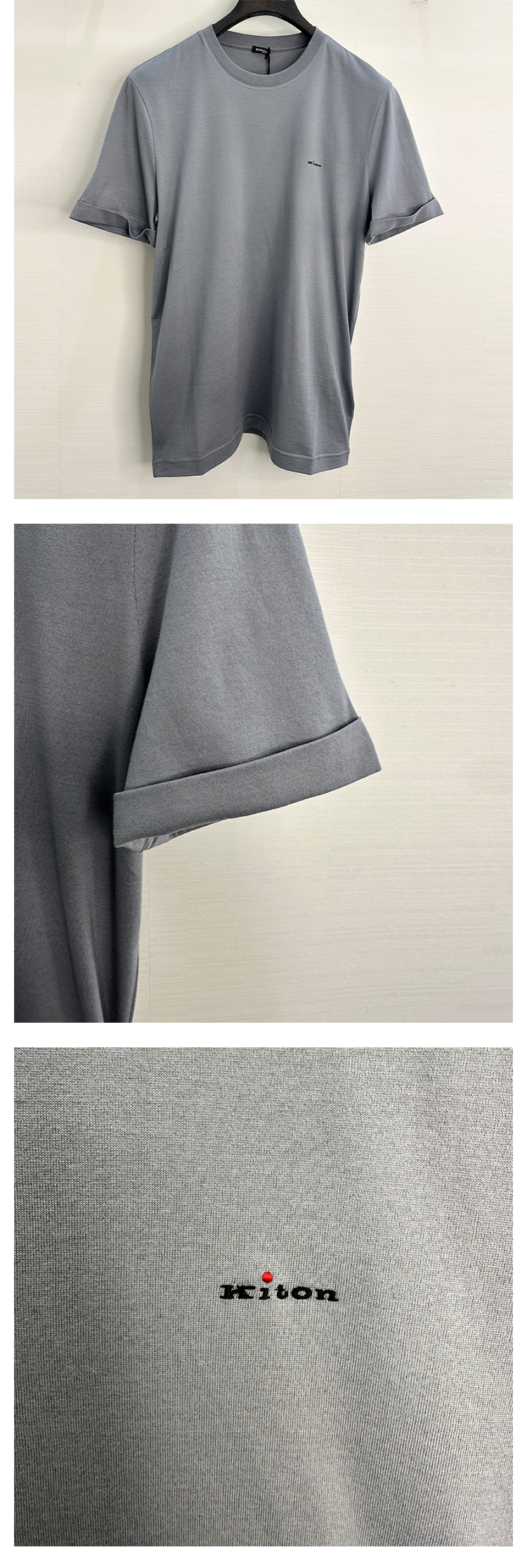 KITON 男士字母徽标刺绣圆领短袖T恤 灰色 UMK075308002