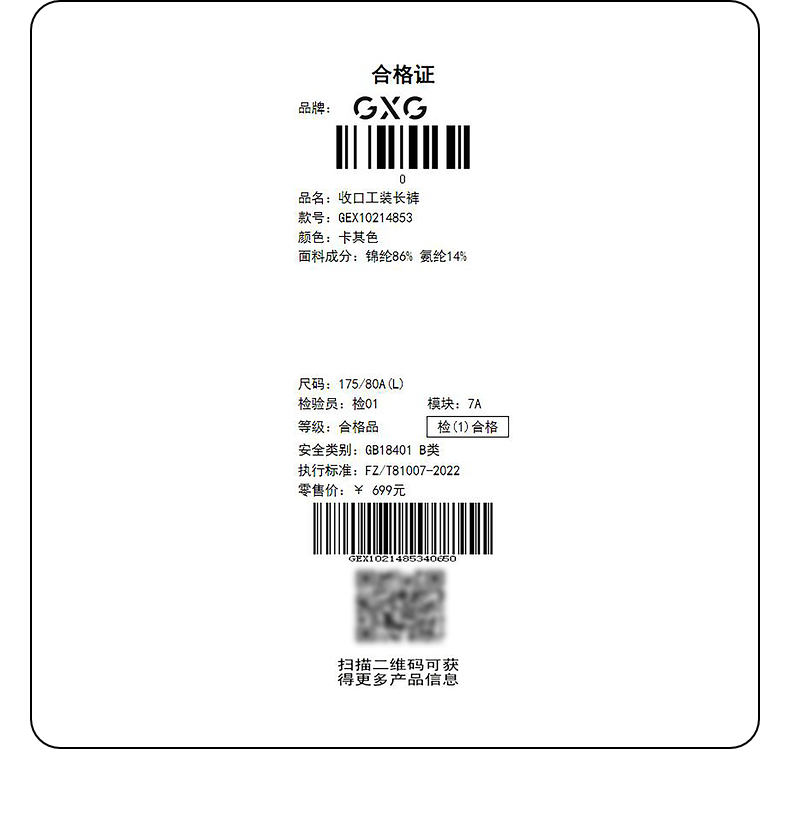 GXG男装 双色口袋工装长裤束脚裤 秋季热卖休闲裤GEX10214853