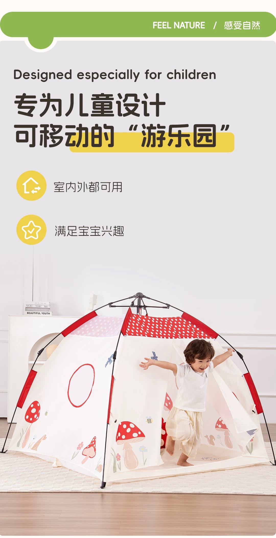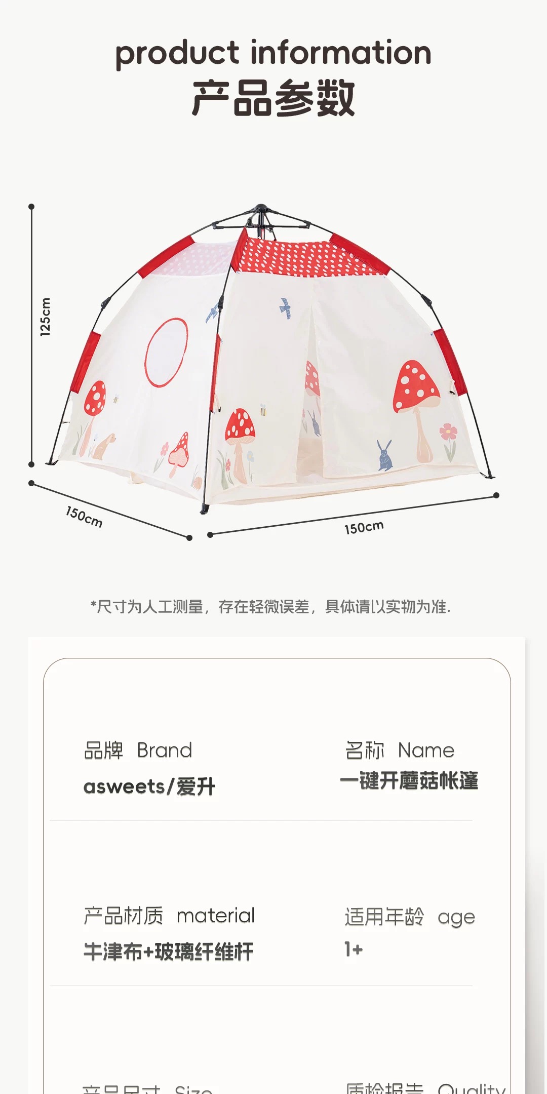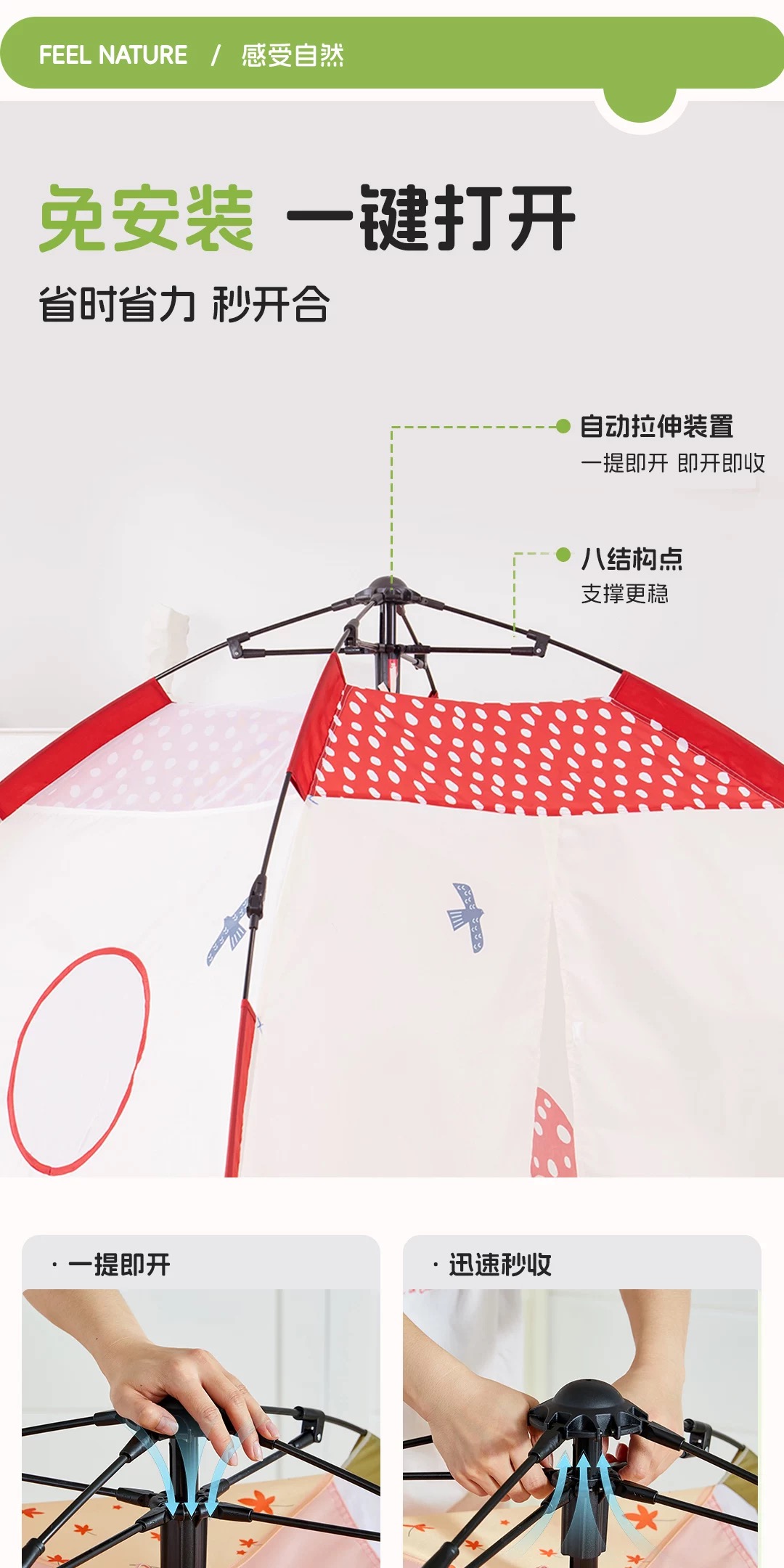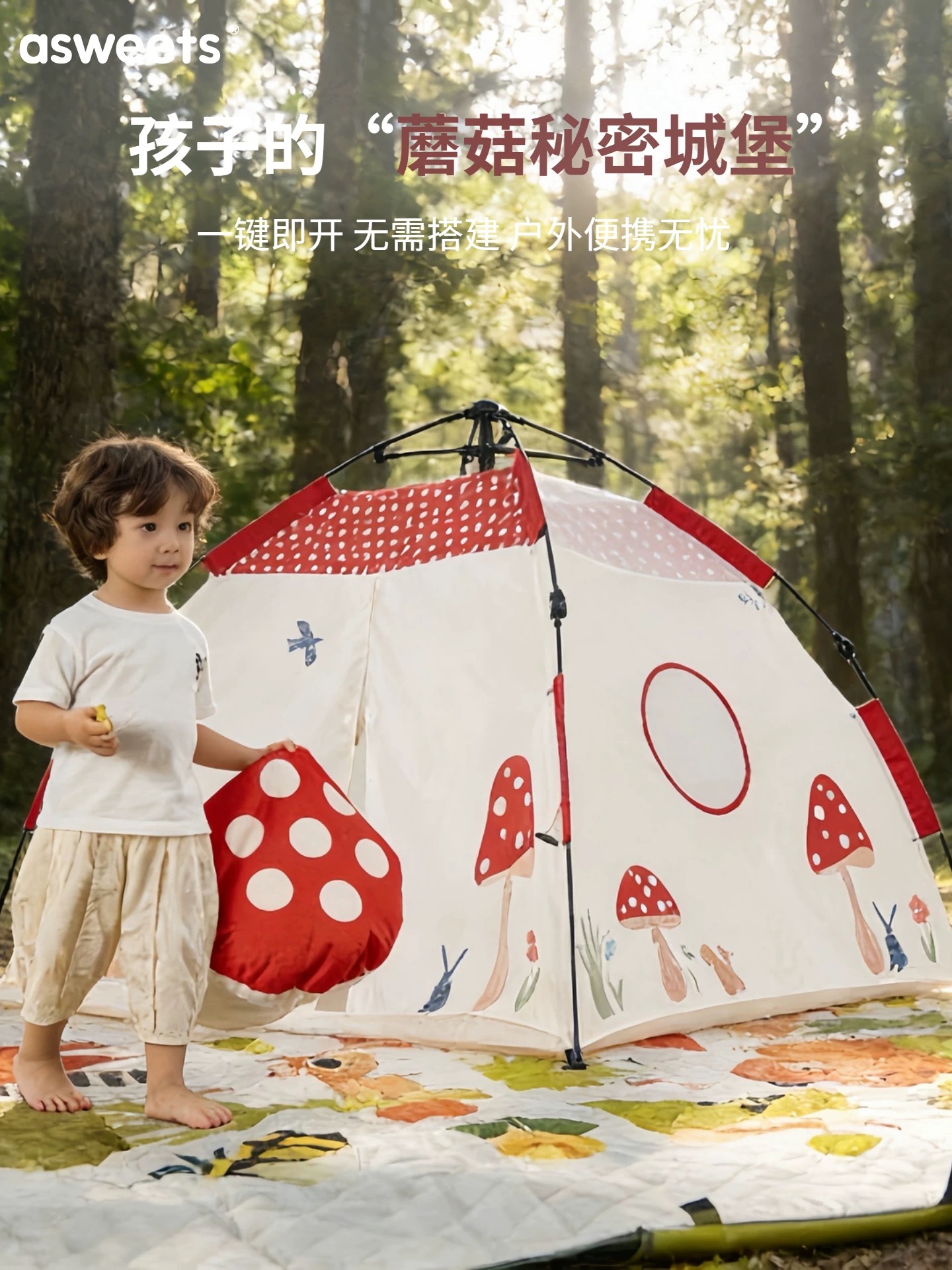 asweets儿童帐篷室内户外一键开遮阳便携式免搭建宝宝睡觉小房子