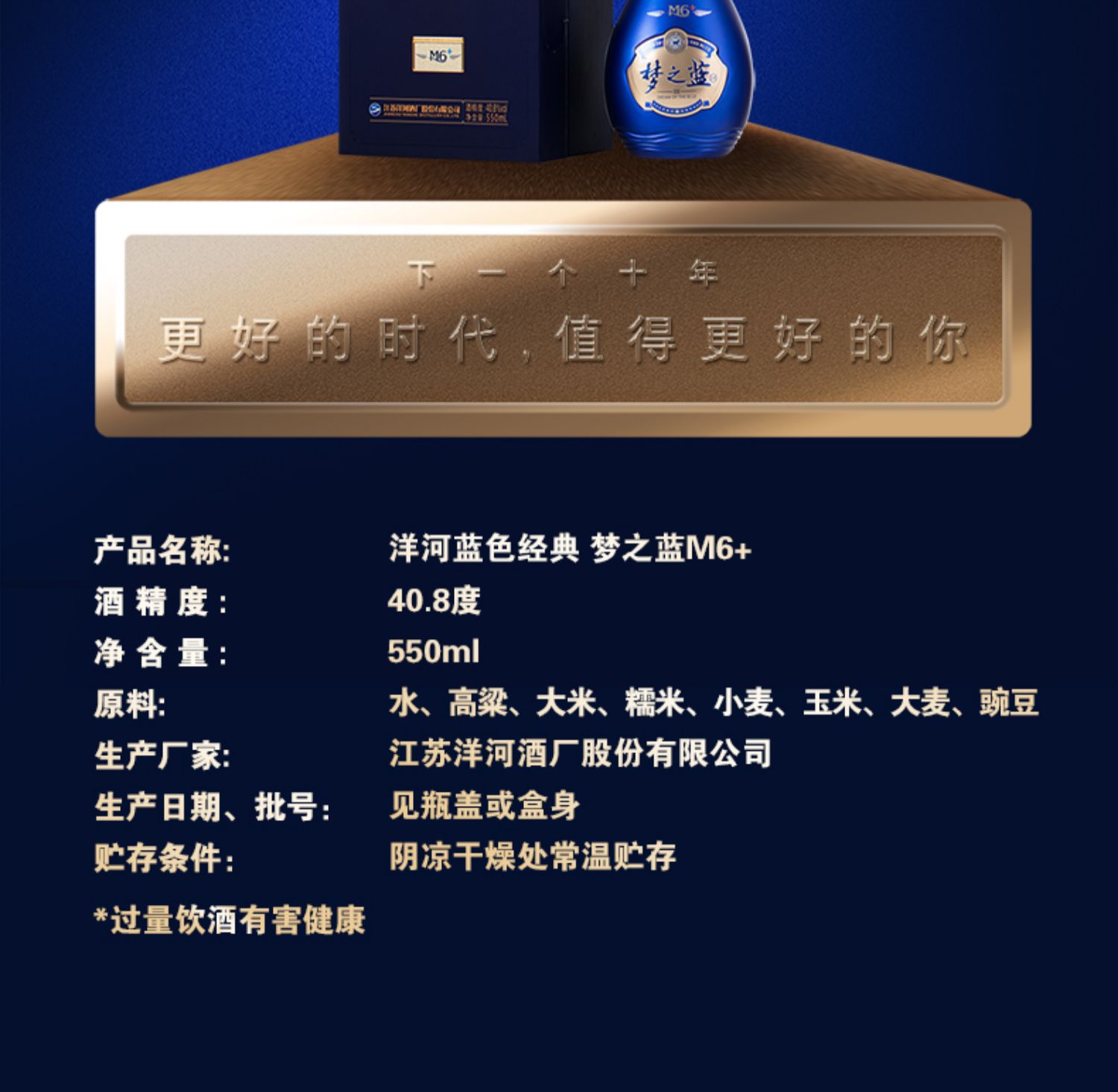 【实体商超版非电商版】洋河梦之蓝(M6+)40.8% 550ml