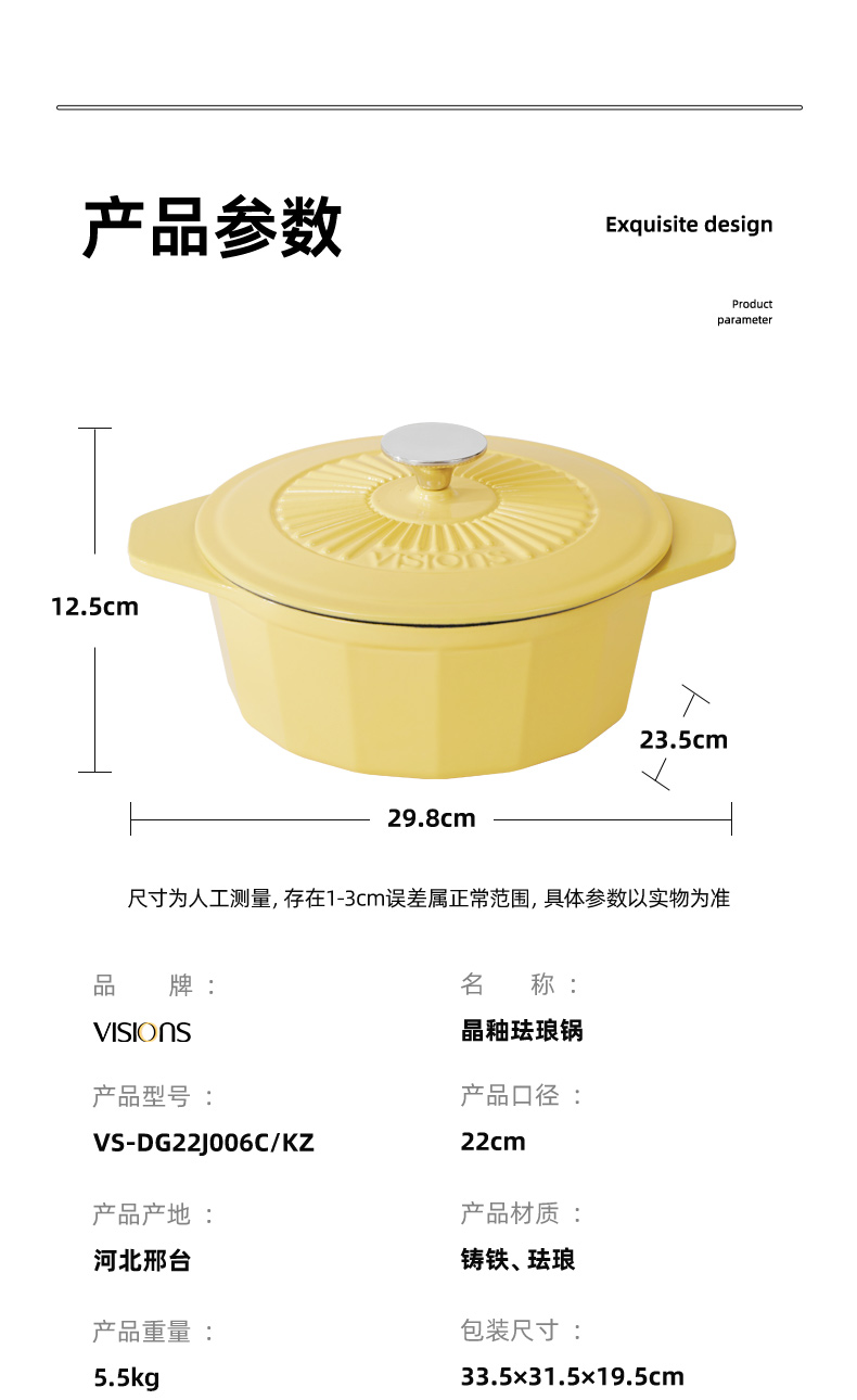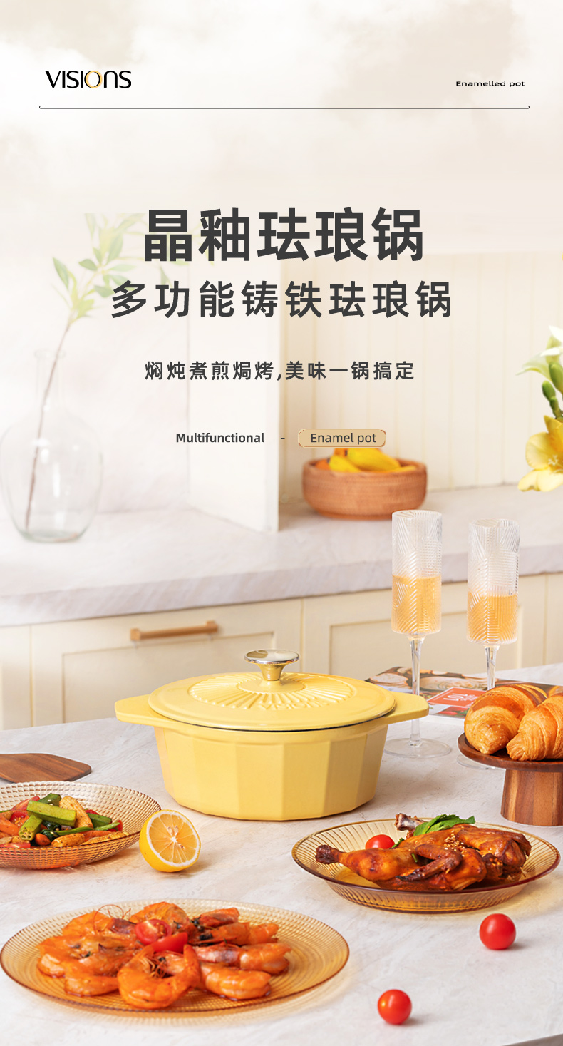 康宁(VISIONS)晶釉珐琅锅(含赠品-硅胶三件套)VS-DG22J006C/KZ