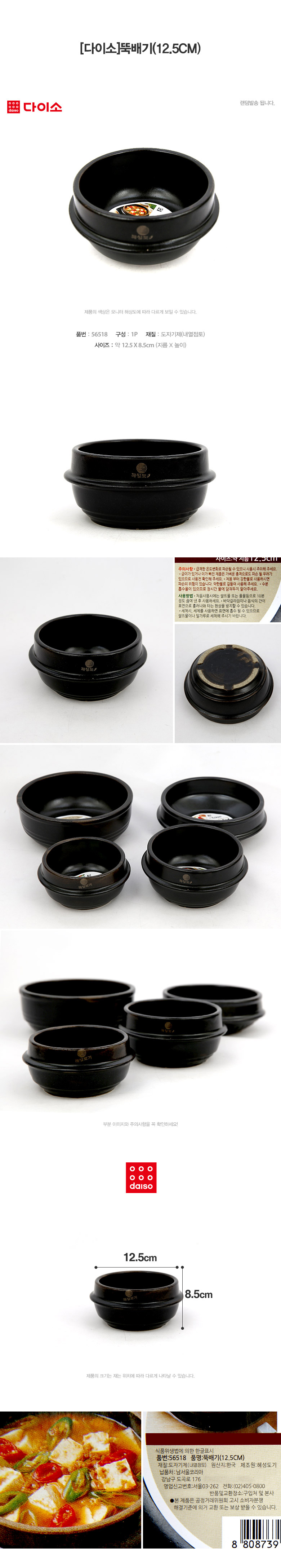 大创 Daiso Casserole 韩国石锅拌饭酱汤砂锅陶(12.5CM)-56518JPY带授权招加盟代理