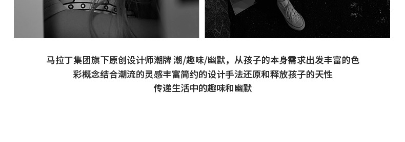 - 马拉丁旗下的城市户外潮童品牌,为3-12岁的孩子提供实用与细节设计的时尚度童装,打造现代简潮和城市户外感的着装,man游童年的冒险jia!