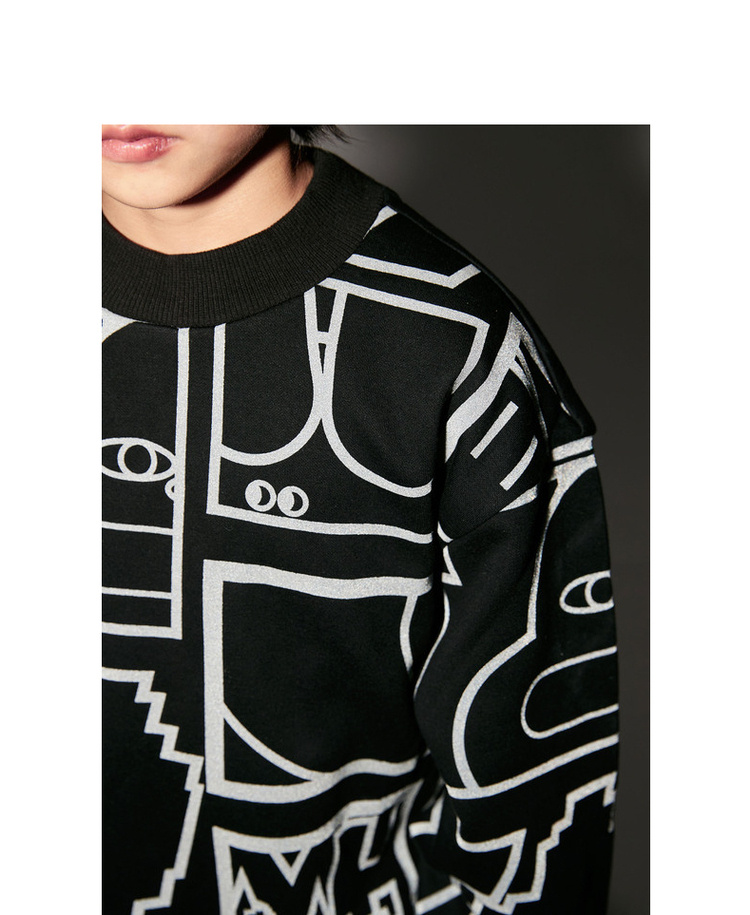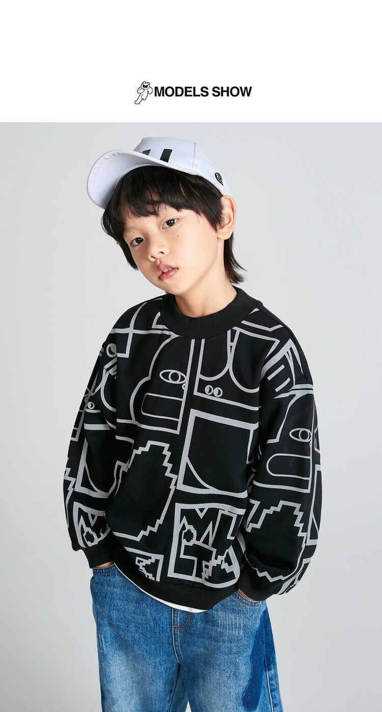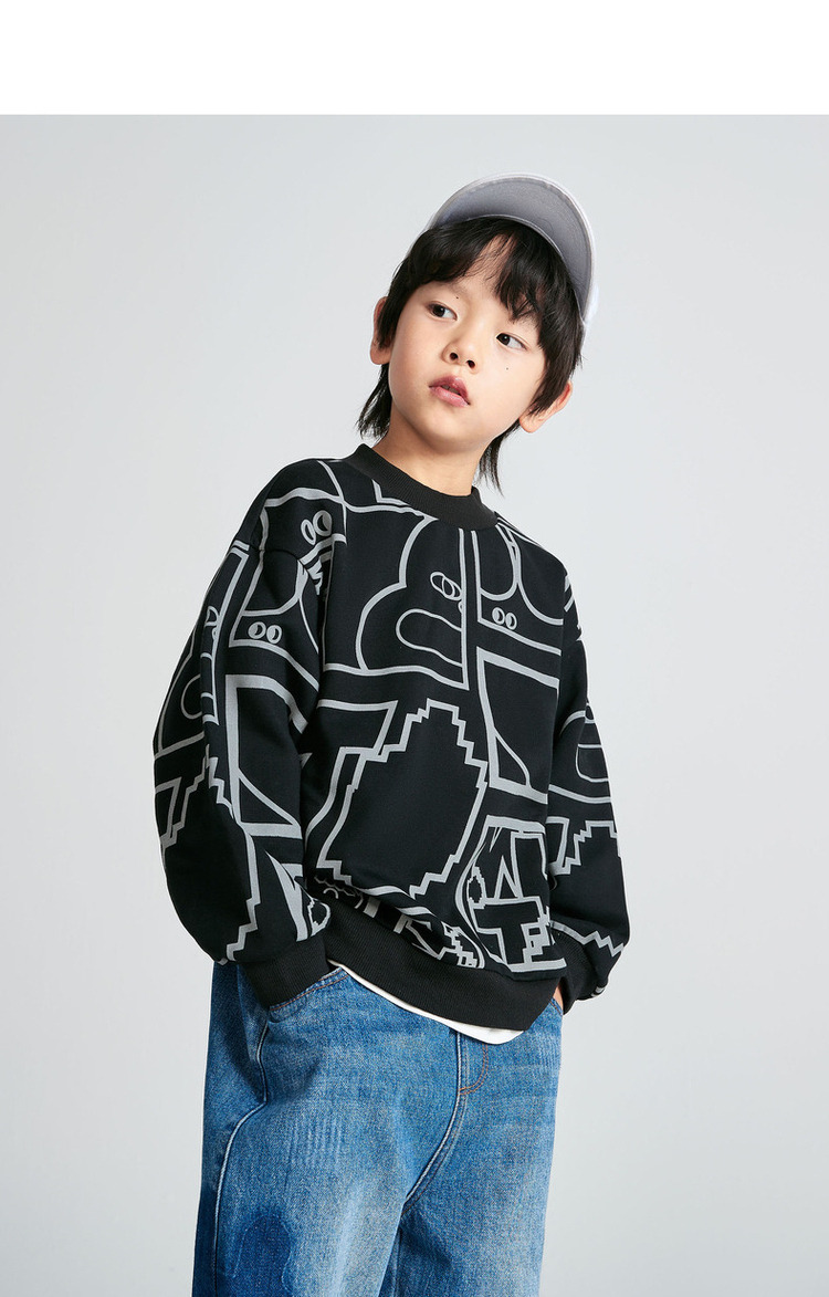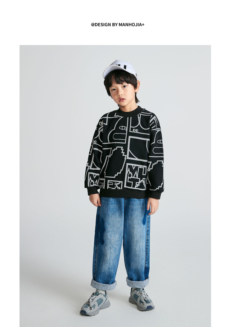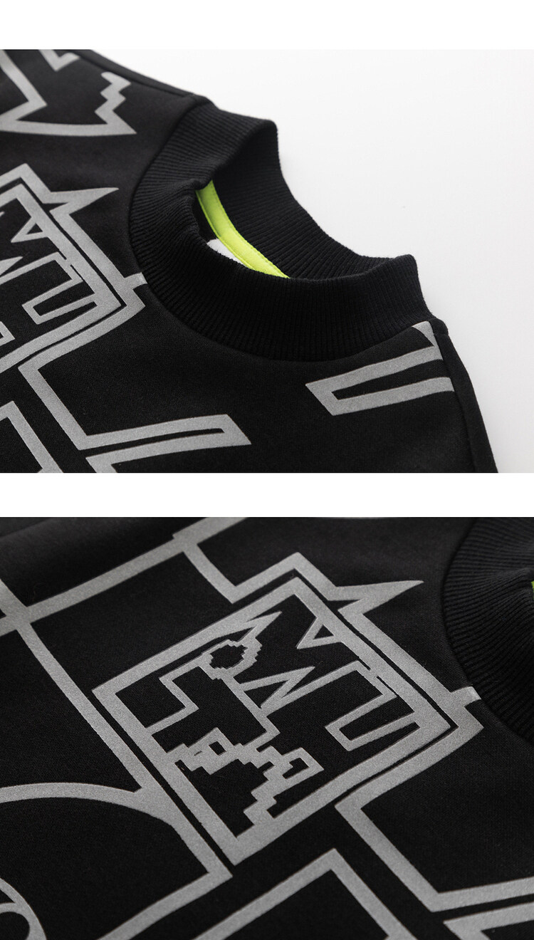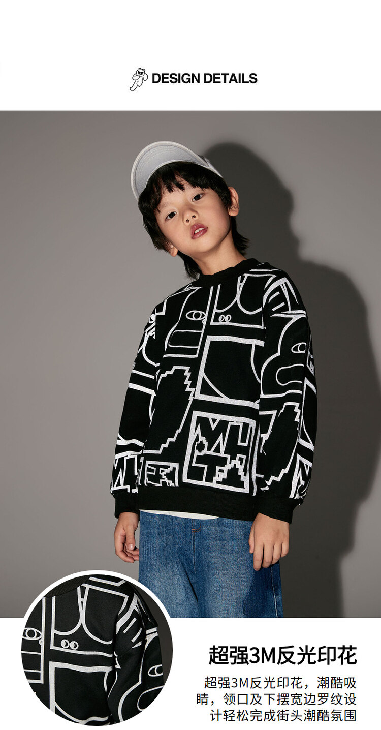 马拉丁潮牌漫画家儿童卫衣冬2021新品3M反光印花宽边罗纹套头卫衣