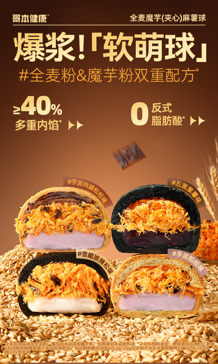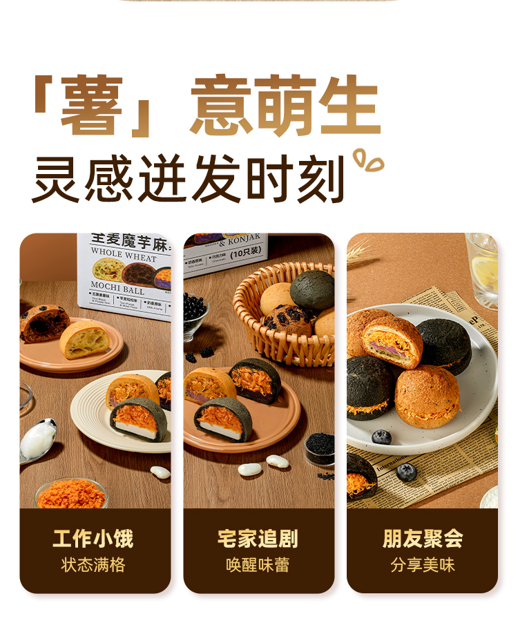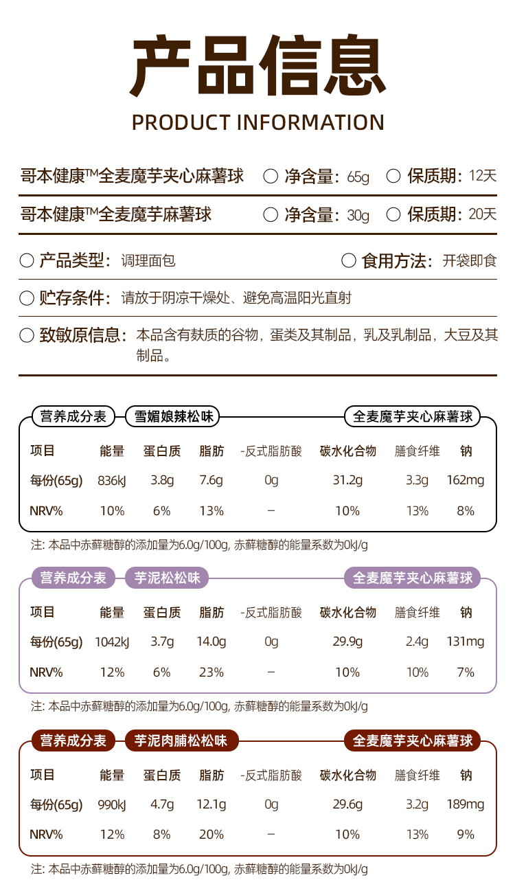 【退酮过渡】【生酮不可】【短保产品不支持无理由退货】哥本™全麦魔芋麻薯球30g(奶香原味/巧克力味)全麦魔芋夹心麻薯球65g(芋泥松松味/五黑紫薯味/雪媚娘辣松味)