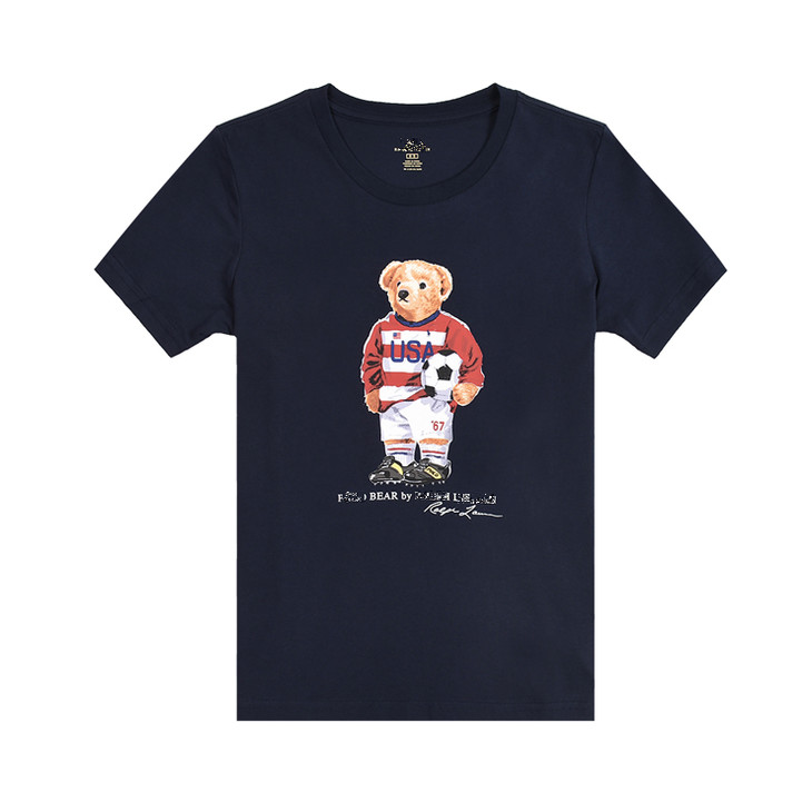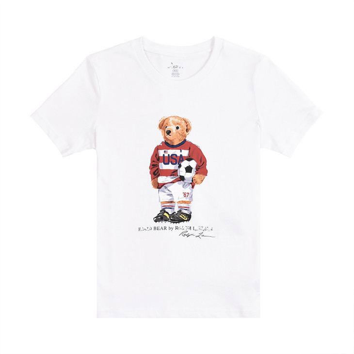 童装圆领短袖T恤!纯棉穿着舒适。正面精美泰迪熊主题图案印花,休闲百搭。