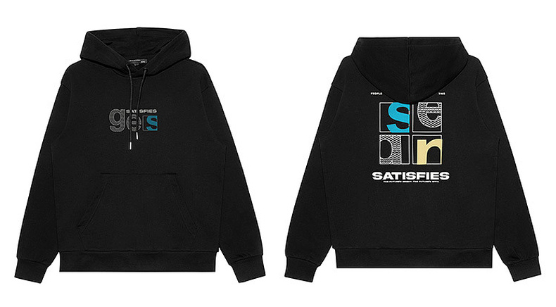 GXG男装【撞色印花】春季时尚潮流正背面图案男式连帽卫衣K&C