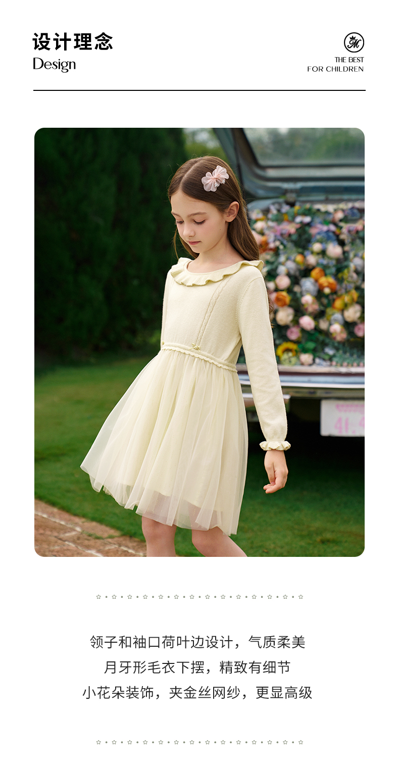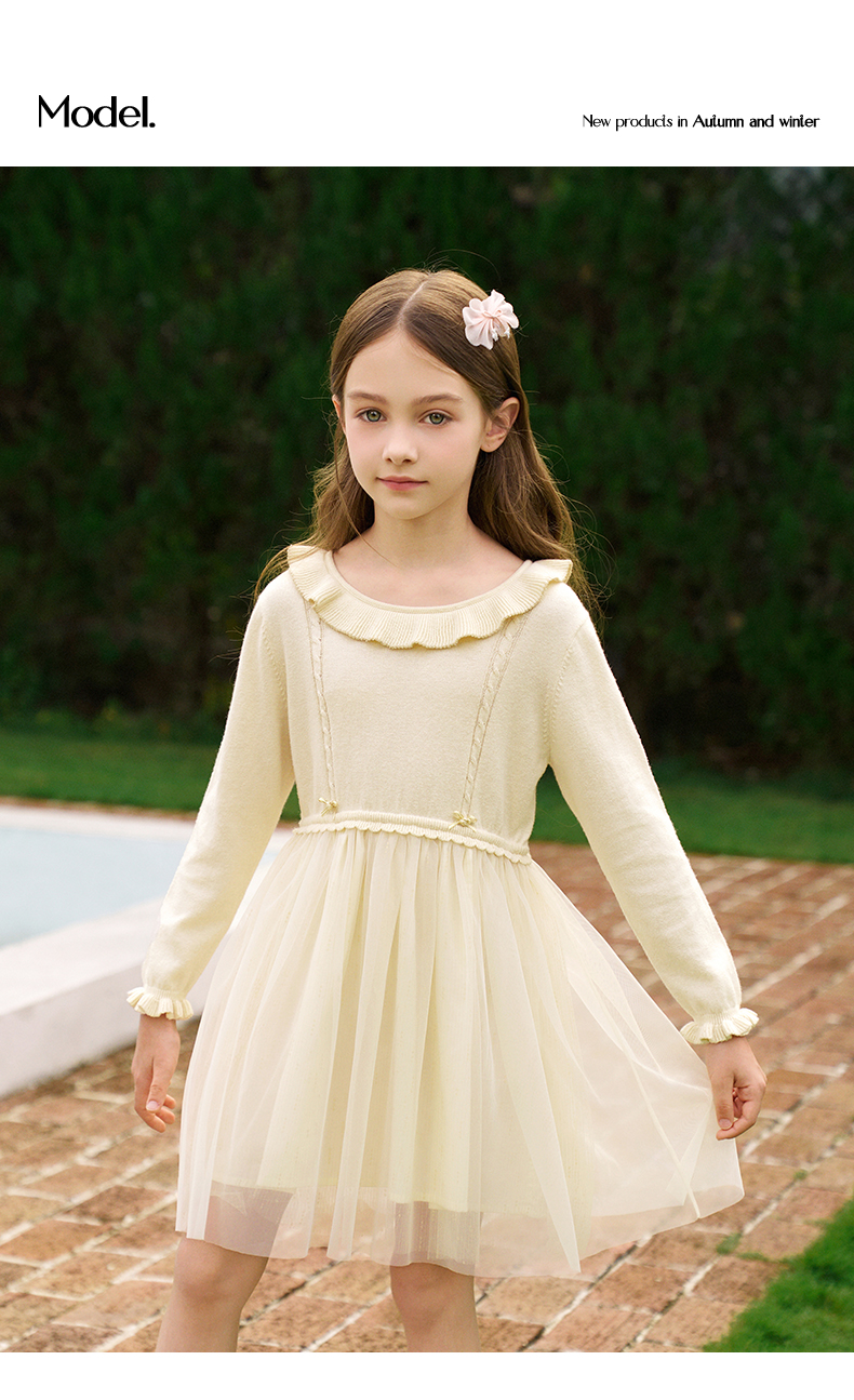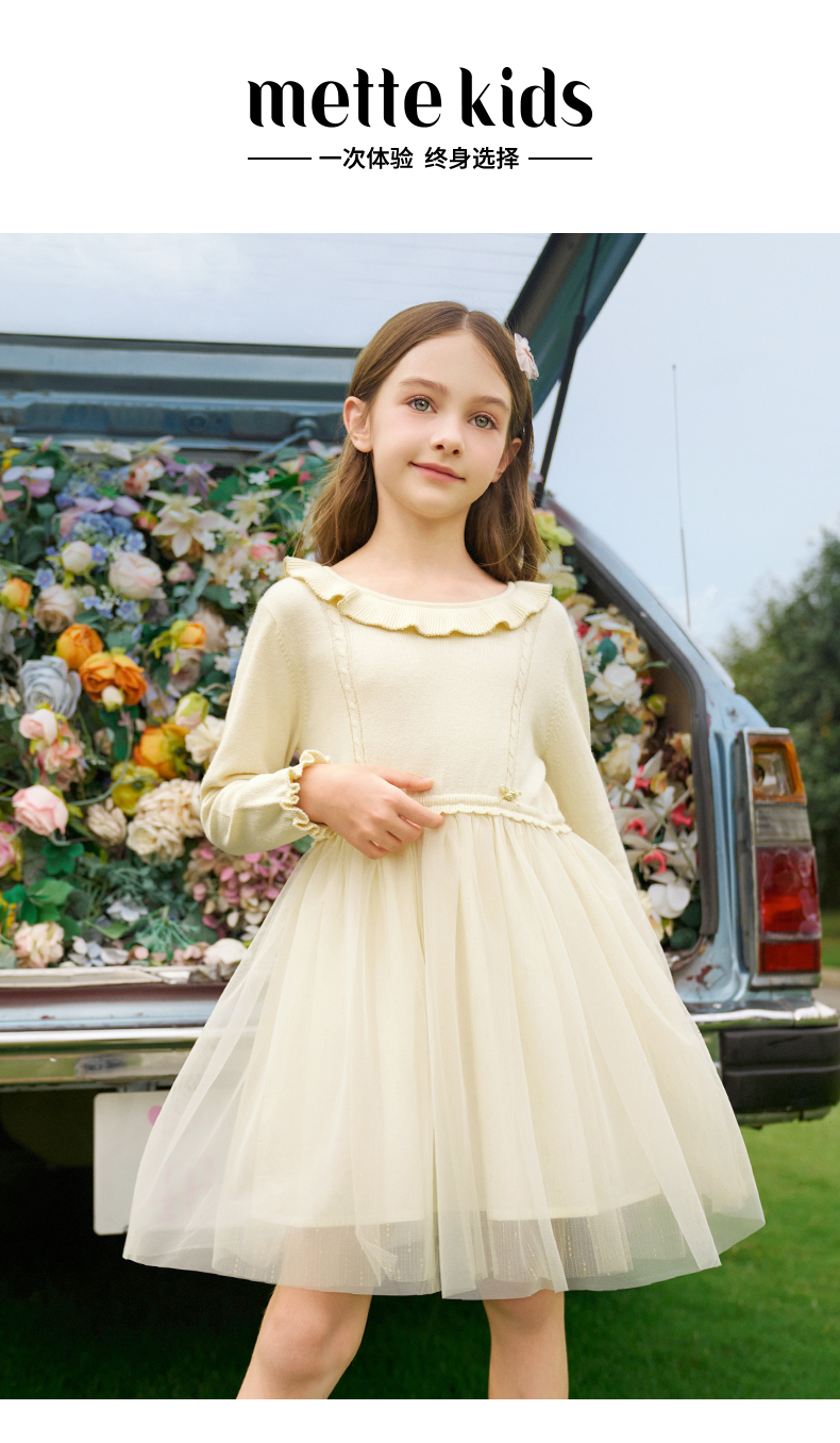 mettekids女童连衣裙2024新款春秋针织裙网纱裙子儿童甜美公主裙